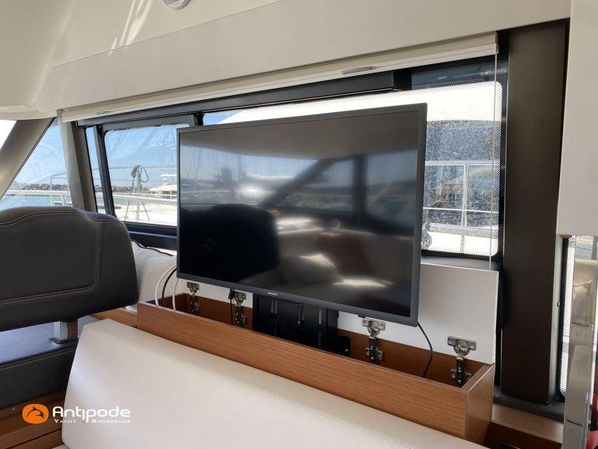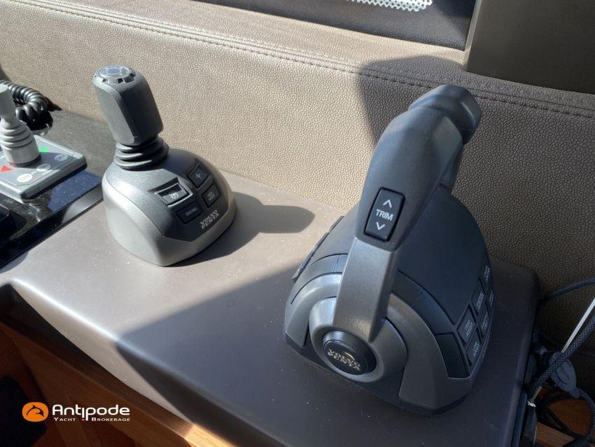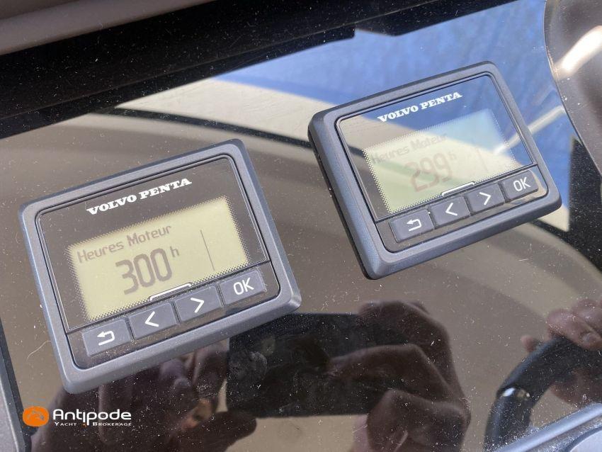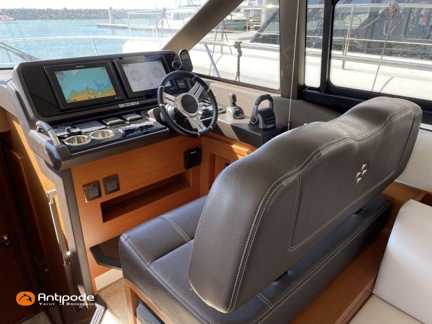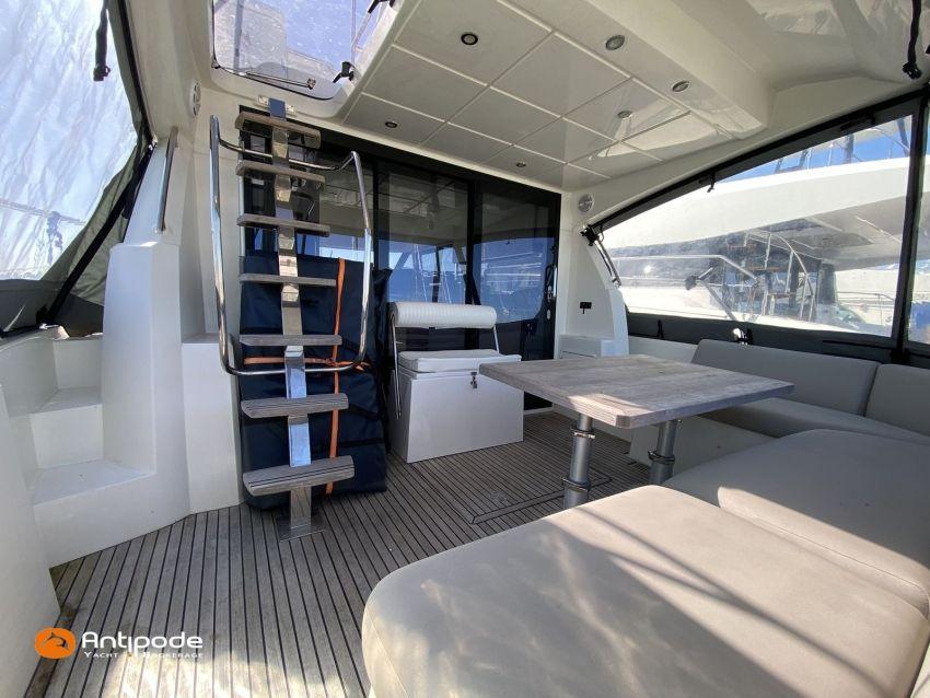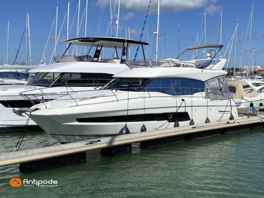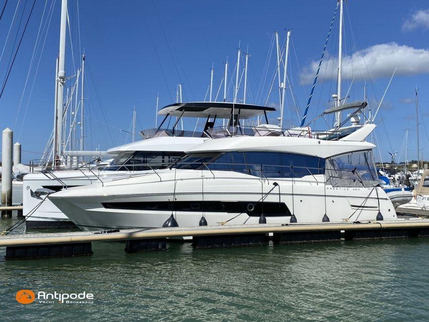 PRESTIGE 460 FLY, 2021, deuxième mains, jamais louée, VOLVO IPS 500, 380 x2 cv (300 h), Propulseur d'étrave, Version Préférence, Menuiseries intérieures Moabi, Fond de cockpit latté teck, Jupe arrière lattée teck, Table de cockpit Teck, Coussins bains de soleil avant, Compteur de chaine au cockpit, Plateforme arrière hydraulique, Flying bridge avec poste de pilotage, Bimini flying bridge, Coussins bains de soleil flying bridge, Tauds de fermeture arrière complète du cockpit, Pilote automatique in board Raymarine, 2x GPS / lecteur de carte au poste de pilotage, Camera arrière - Raymarine, Flap zip wake, Radar avec radôme sur arceau, Transpondeur AIS (émetteur récepteur), Télévision dans le carré, Télévision cabine propriétaire, Four à micro-ondes, Machine à laver la vaisselle 220 V, Convertisseur 12 V / 220 V - 2000w, Chauffage EBERSPACER à circulation, Prise eau douce de quai, Pompe eau douce dans le cockpit, Pompe eau de mer dans le cockpit, Annexe - Highfield CL 360, Moteur hors-bord - SUZUKI 30cv, Visible Bretagne. Pour plus d'informations ou pour fixer un rendez-vous de visite, contact : François Mouchel 06 62 30 97 30 - francois@antipode-yachts.com