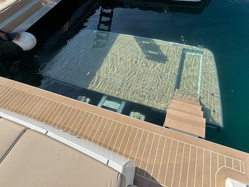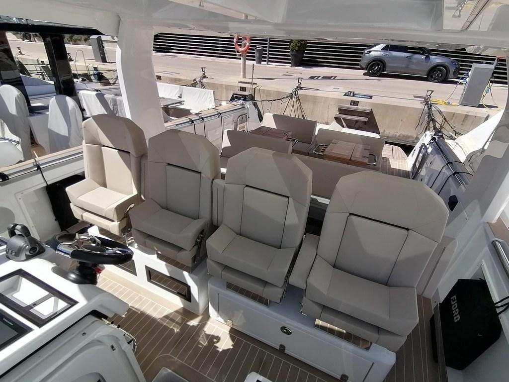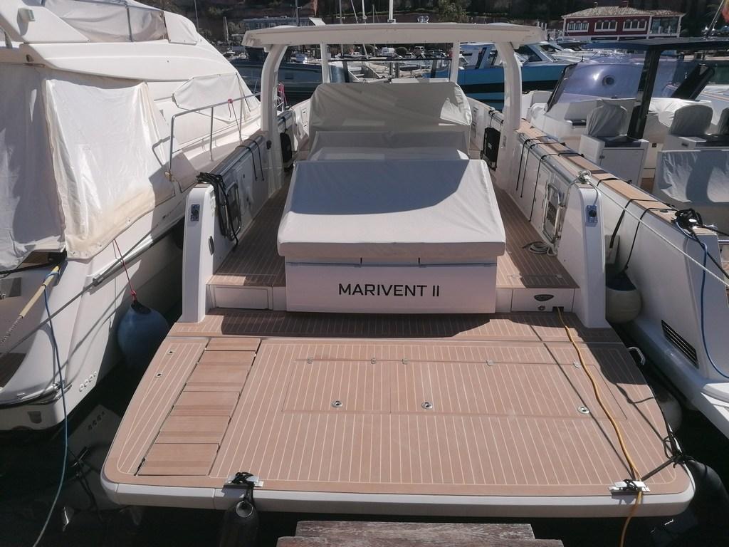 Alarme moteur, Alarme de pompe de cale, 2 Alternateur, Aspiration des Eaux Usées depuis le Pont, Auto Dynamic Trim Interceptor (with Auto trim, List and Coordinated Turn), Eau sous pression, 4 Batteries (x160Ah AGM service bank), 8 Taquets pliants, Système de vidange, Chargeur de batterie (Mastervolt), Câble d’alimentation à quai, Douche de cockpit, 2 Volets de trim, Extincteur(s) fixe(s) (fire buoy), Lavabo dans le cockpit, Éclairage de courtoisie (Indirect light package: multicolour on handrails on side deck and sunbed and white colour on dashboard), Spots sous-marins (multicolor), Moniteur de batterie (Mastervolt), 8 Défenses, Passerelle (telescopic hydraulic), Plateforme arrière (extended hydraulic tender lift), 2 Pompe de cale automatique, 3 Pompe de cale électrique, Pompe de cale manuelle, Pont en teck (Flexiteak), Pont en teck (synthetic Flexiteak), Porte latérale (sliding), 2 Prise de quai, Guindeau électrique, Echelle de bain (foldbale), Stabilisateurs (Quick gyro (12V or 230V)), 2 table de cockpit, 2 Filières avec sortie latèrale, Corne, T-Top (Full beam T-Top with windshield frame and wiper cover).