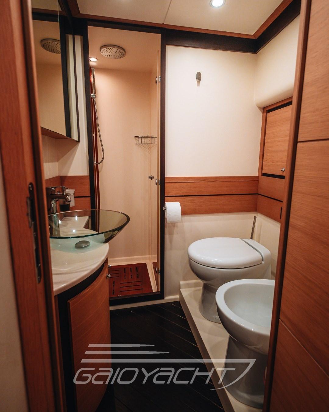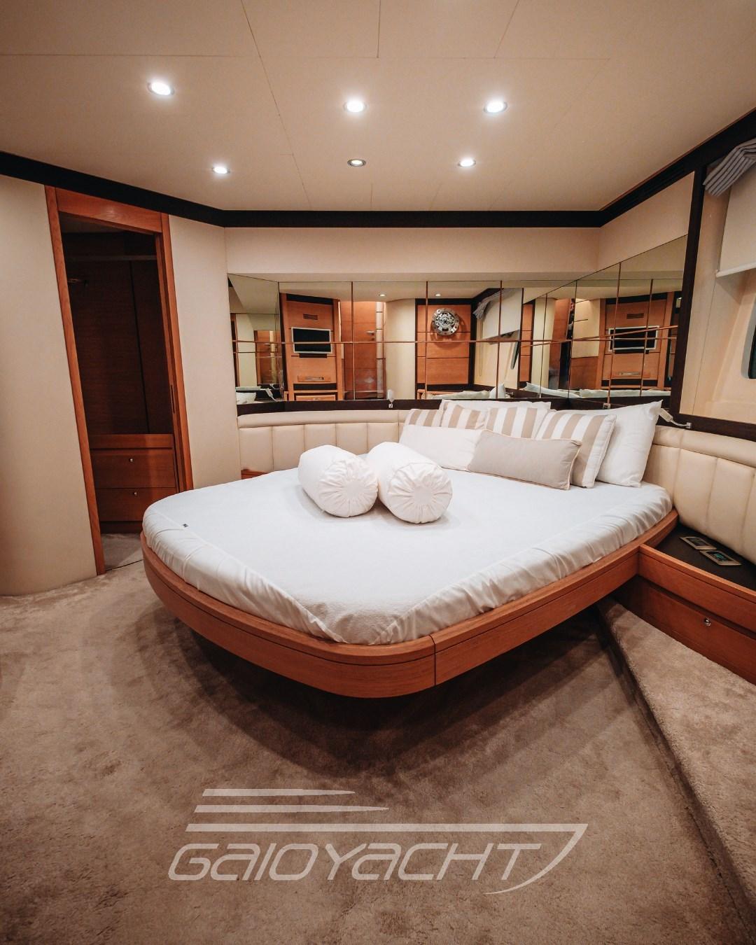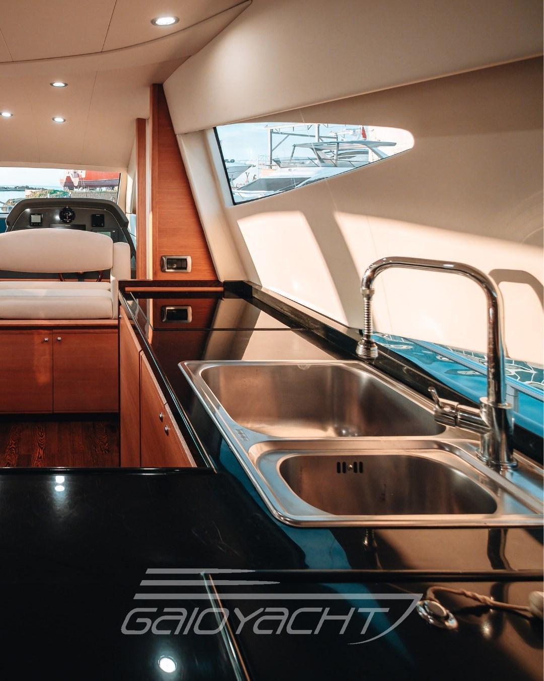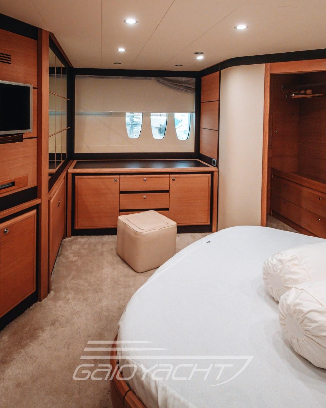 Alarme gaz, Alarme moteur, Alarme de pompe de cale, Ancre (Da sostituire), Ouverture du compartiment moteur électrique, Auto Dynamic Trim Interceptor, Eau sous pression, Trim hydraulique, Passavant en teck, Douche de cockpit, Double barre à roue, Phare de poursuite, Flaps électriques, Bossoirs, Bossoirs pour annexe, Extincteur(s) fixe(s), Indicateurs de flaps, Éclairage de courtoisie, Passerelle, Plateforme arrière, Pompe de Vidange du Réservoir d’Eaux Usées, Porte latérale, Porte latérale, Cockpit en teck, Prise de quai, Connexion eau sous pression à quai, Répétiteur électronique, Guindeau Hydraulique, Echelle de bain, Selles pour Annexe (Predisposizione), table de cockpit, Corne, Pont en teck, Winch électrique arrière.