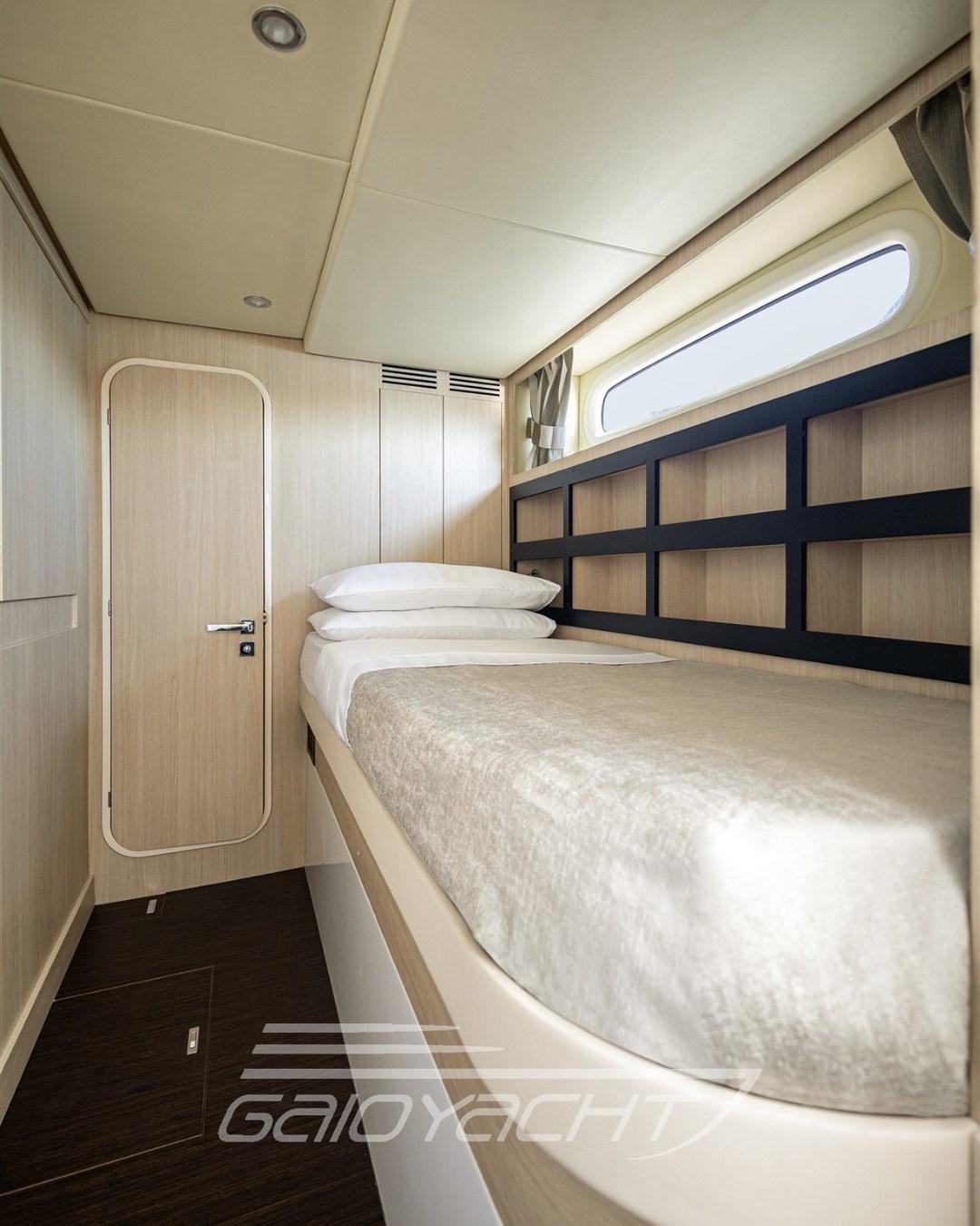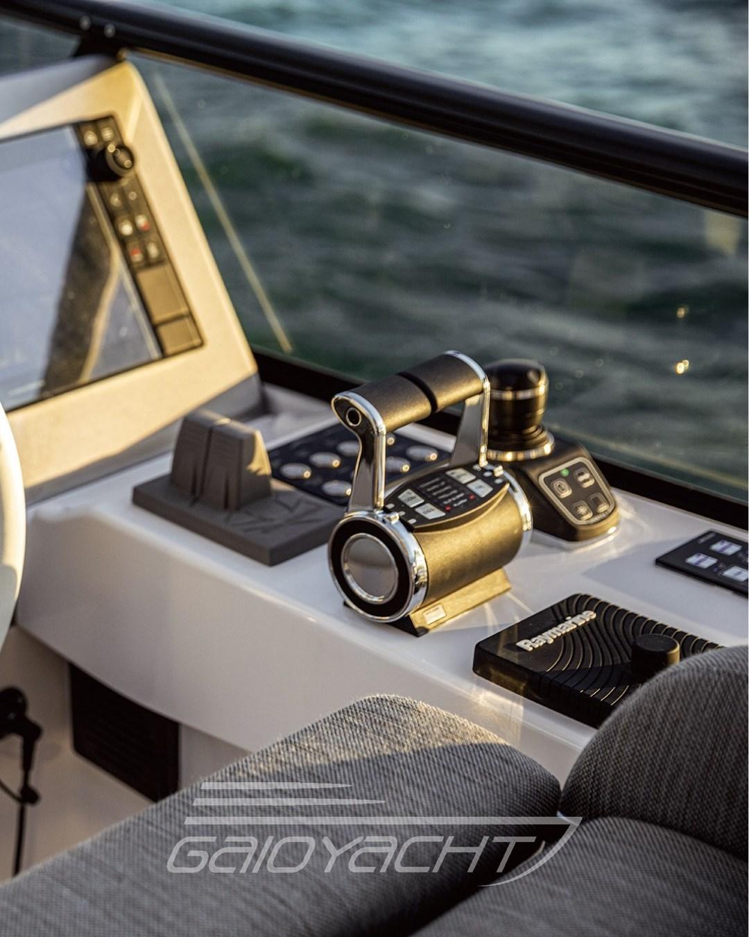 Contrôle automatique de l’assiette ; Mât; Feux de manœuvre ; Mobile avec TV 43'' ; lucu Forfait de luxe pour l’extérieur et l’intérieur ; Table d’étrave avec système électrique de montée et de descente ; Plancher de mouche en teck ; Rideau d’intimité dans le cockpit ; Bidet dans la salle de bain du propriétaire ; Quatrième cabine en version 2 lits ; Chaises pour table à manger ; stores vénitiens dans le salon ; Plancher du salon en bois ; But de Remarine.