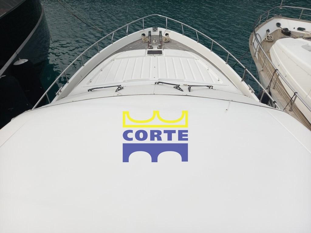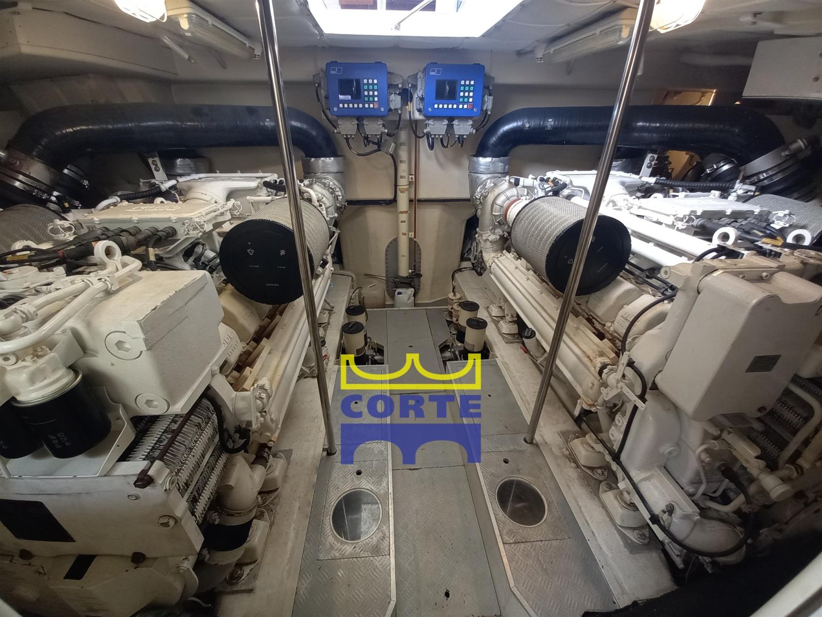 Alarme gaz (sala macchine), Alarme moteur, Alarme de pompe de cale, 2 Ancre, Eau sous pression, Passavant en teck, Câble d’alimentation à quai, Douche de cockpit, Double barre à roue, Flaps hydrauliques, Grue de flybridge, Extincteur(s) fixe(s) (vano motori), Indicateurs de flaps, Lavage de chaine, Éclairage de courtoisie, Moniteur de batterie, Moteur hors-bord pour annexe, Passerelle, Plateforme arrière (di poppa in teak con apertura idraulica), Pompe de cale automatique, Pompe de cale manuelle, Pont en teck, Porte latérale, Porte latérale, Cockpit en teck, Prise de quai, Connexion eau sous pression à quai, Rollbar, 2 Guindeau électrique, Echelle de bain, table de cockpit (in teak con sedie), Annexe (completo di motore), Corne, 2 Winch électrique arrière, 2 Winch électrique avant.