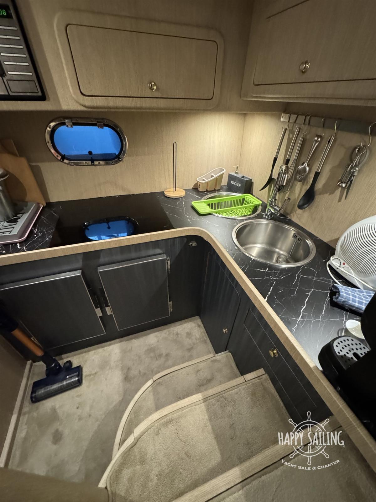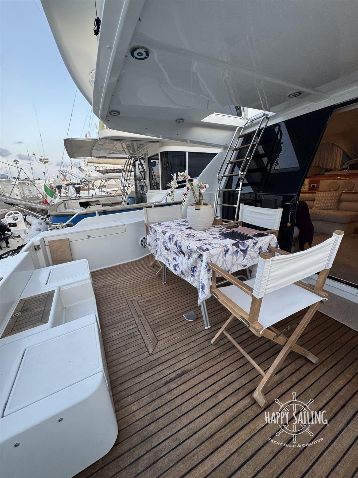 Eau sous pression, Douche de cockpit, Double barre à roue, Flaps fixes, Flaps hydrauliques, Lavage de chaine, Éclairage de courtoisie, Passerelle, Plateforme arrière, Pompe de cale automatique, Cockpit en teck, Prise de quai, Onduleur, Guindeau électrique, Echelle de bain, table de cockpit.
