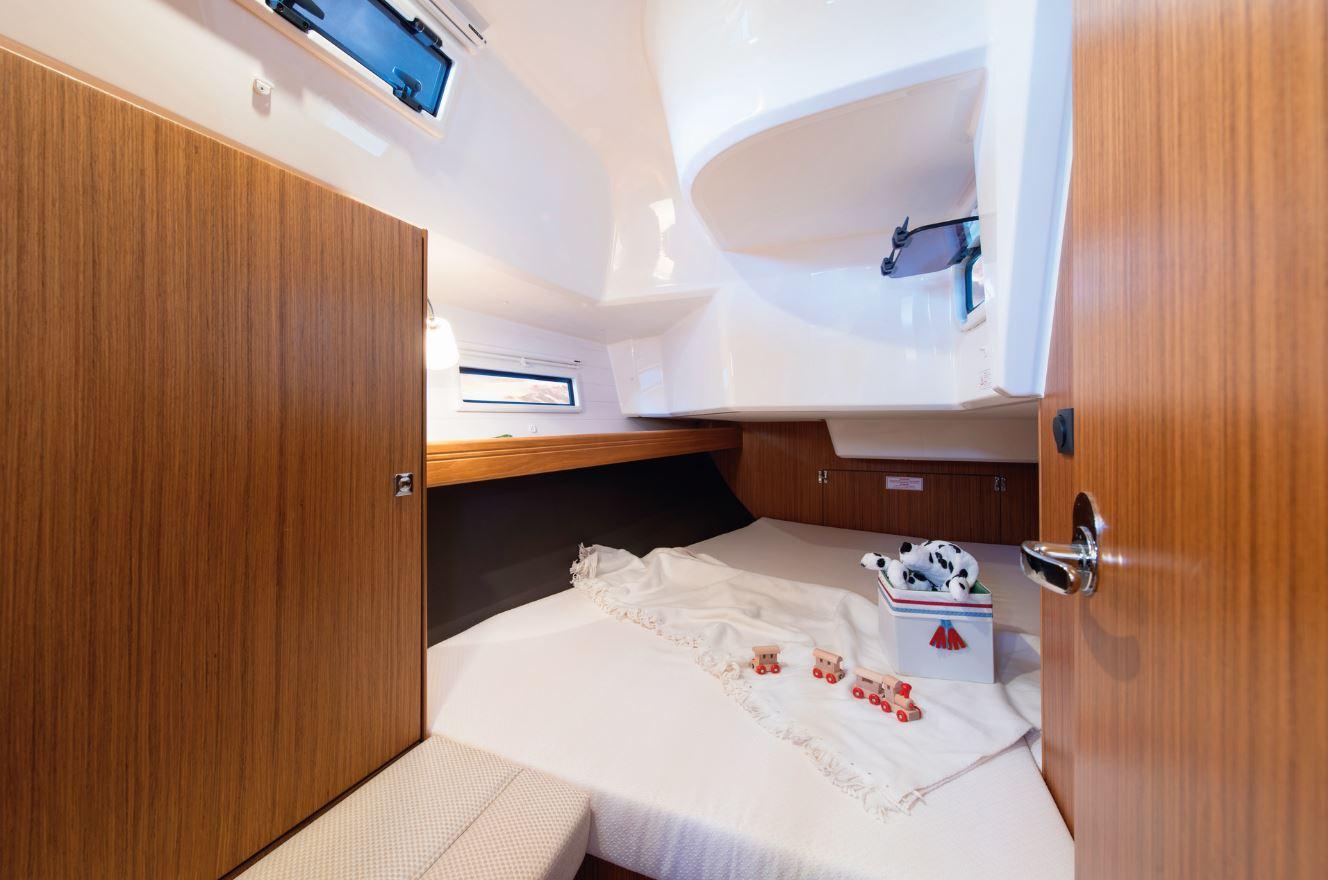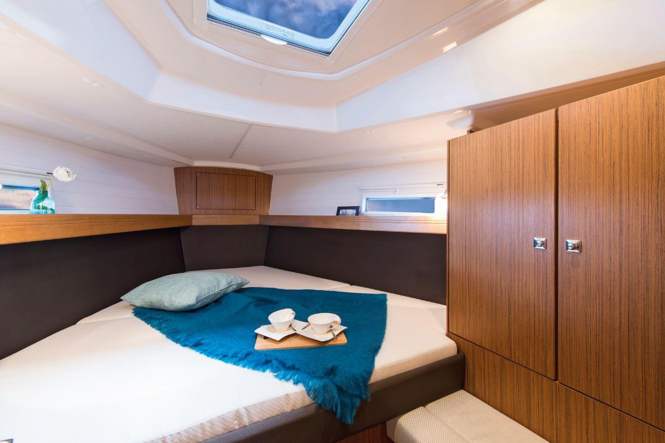 Aménagement Intérieur : L'intérieur du Bavaria Cruiser 37 est conçu pour offrir un espace de vie confortable et fonctionnel. Il comprend généralement une cabine avant spacieuse, une cabine arrière double et un salon central avec une cuisine en L bien équipée.
