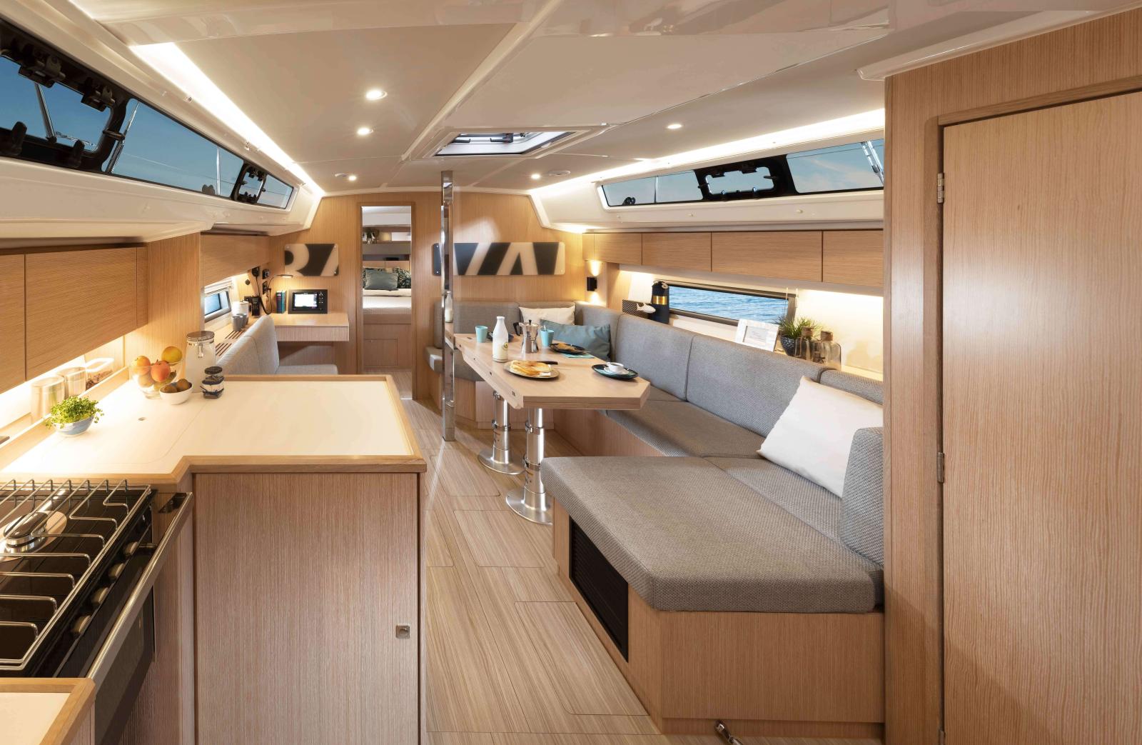 Le design innovant de la coque permet d'agencer de nouvelles dimensions à bord du BAVARIA. Vous pourrez choisir les agencements des cabines luxueuses, en ayant 2 ou 3 cabines et une ou 2 salles d'eau.