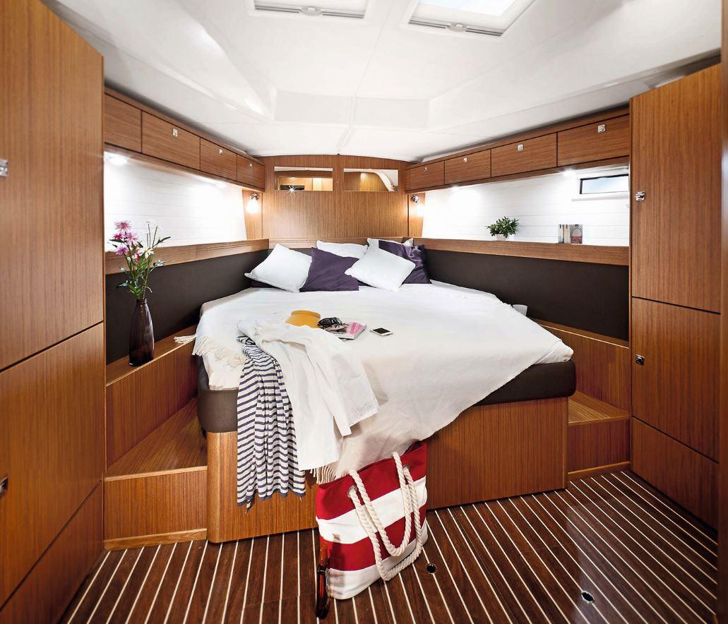 Aménagement Intérieur : L'intérieur du Bavaria Cruiser 46 est conçu pour offrir un confort optimal pendant les croisières. Il comprend généralement une cabine avant spacieuse avec salle de bains attenante, deux cabines arrière doubles, un salon central lumineux avec une cuisine en L bien équipée, et une autre salle de bains séparée.