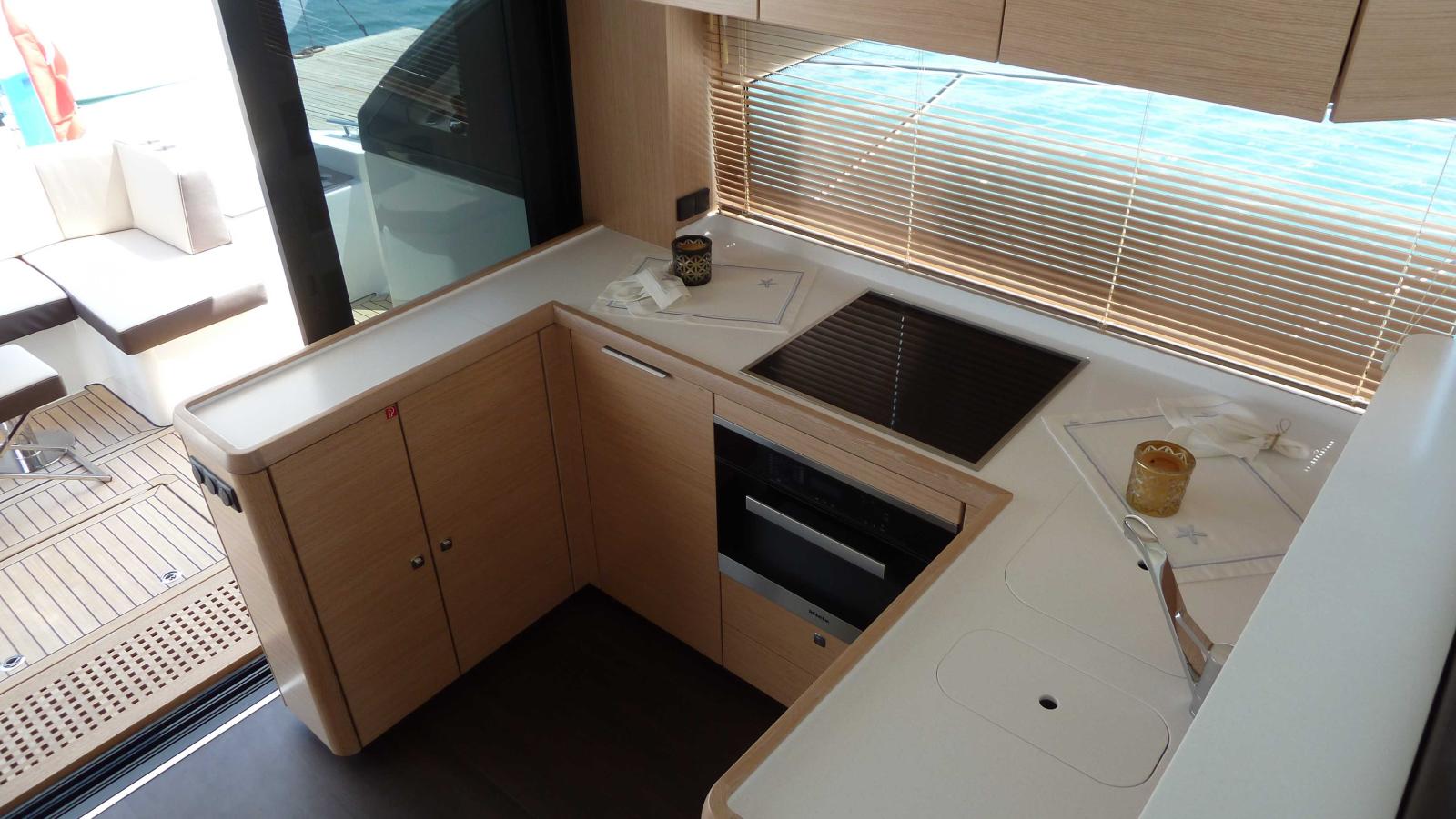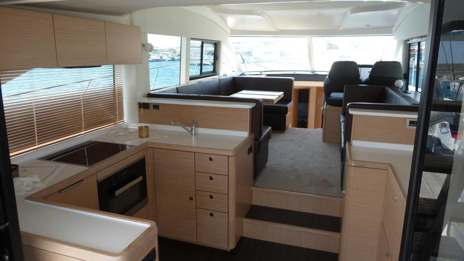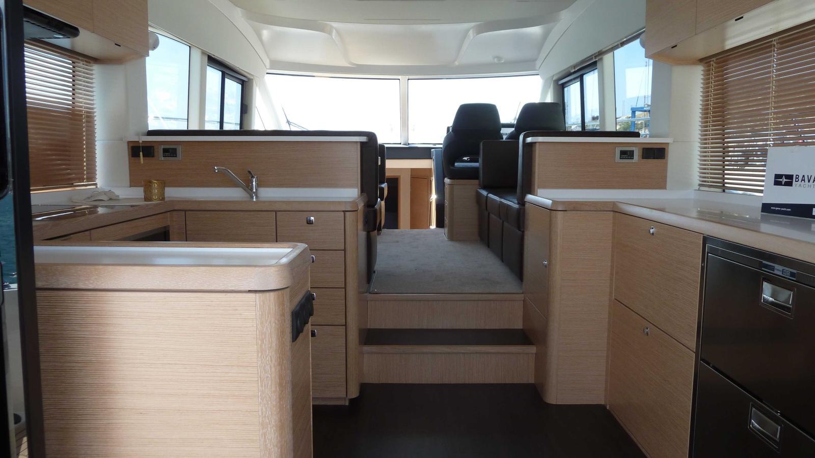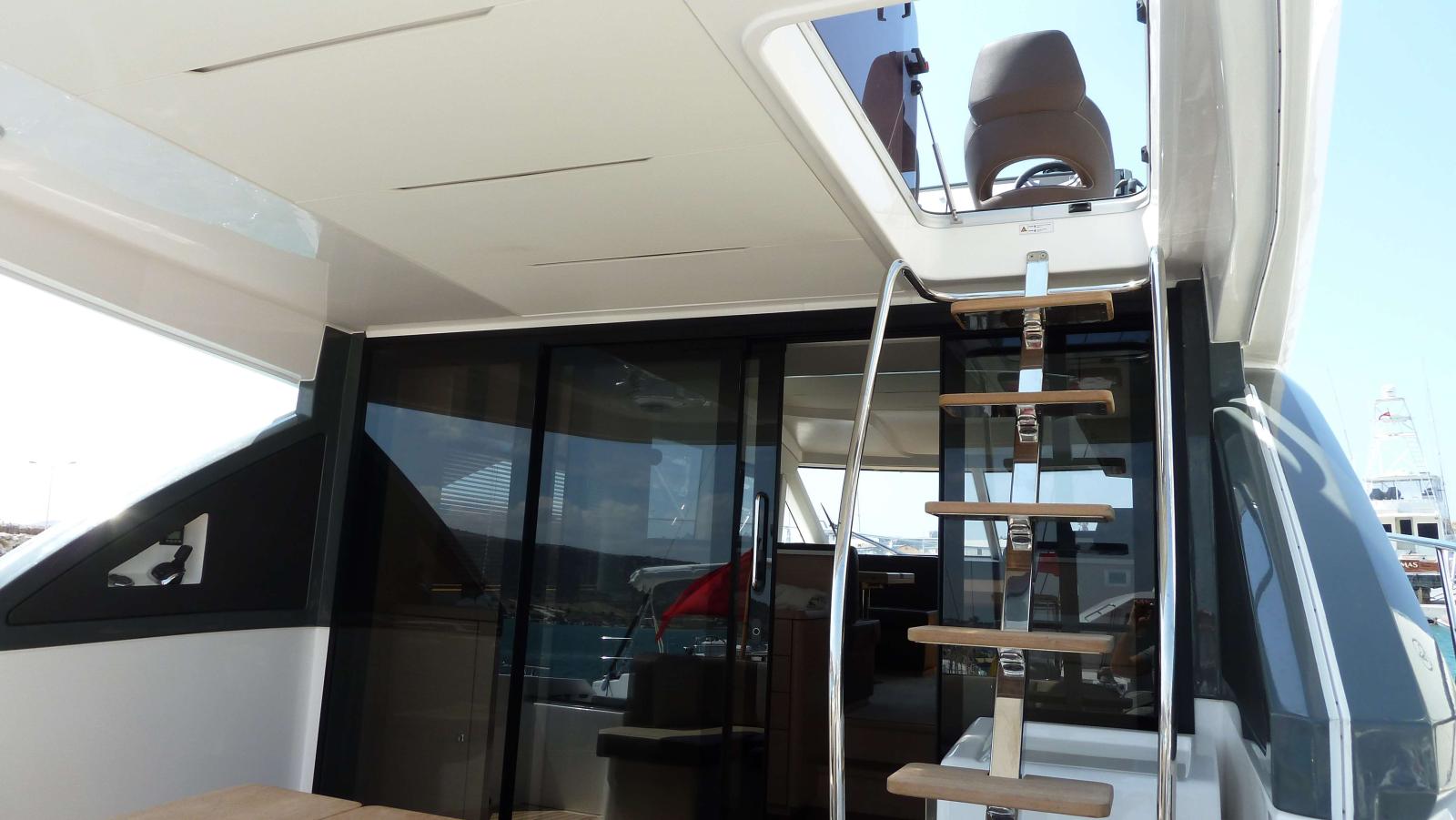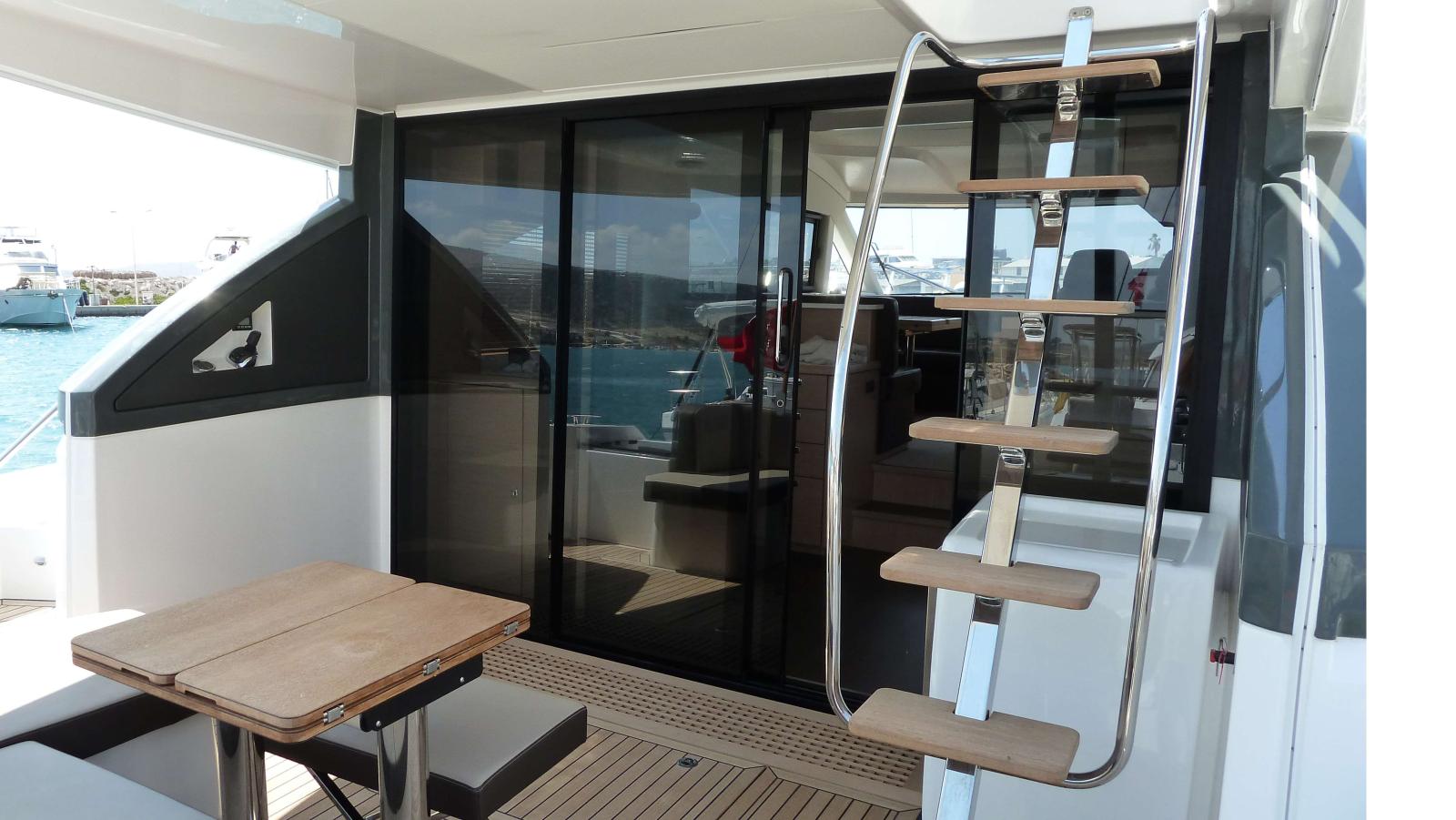 Un large flybridge: Profitez de vues panoramiques depuis le flybridge, un espace idéal pour se détendre, bronzer et déjeuner. Ce Fly est équipé d'une cuisine extérieure avec barbecue et frigo.