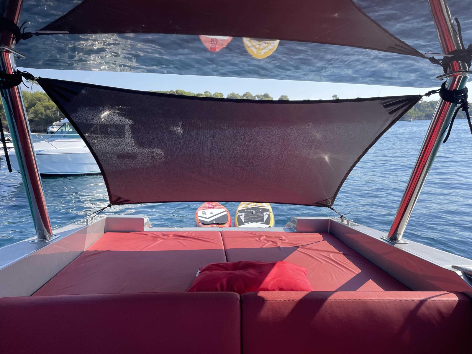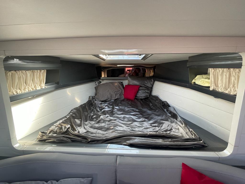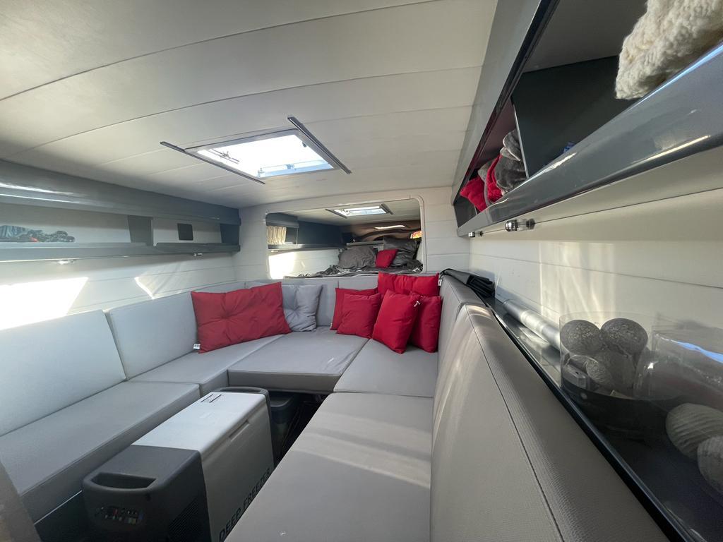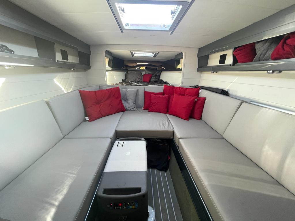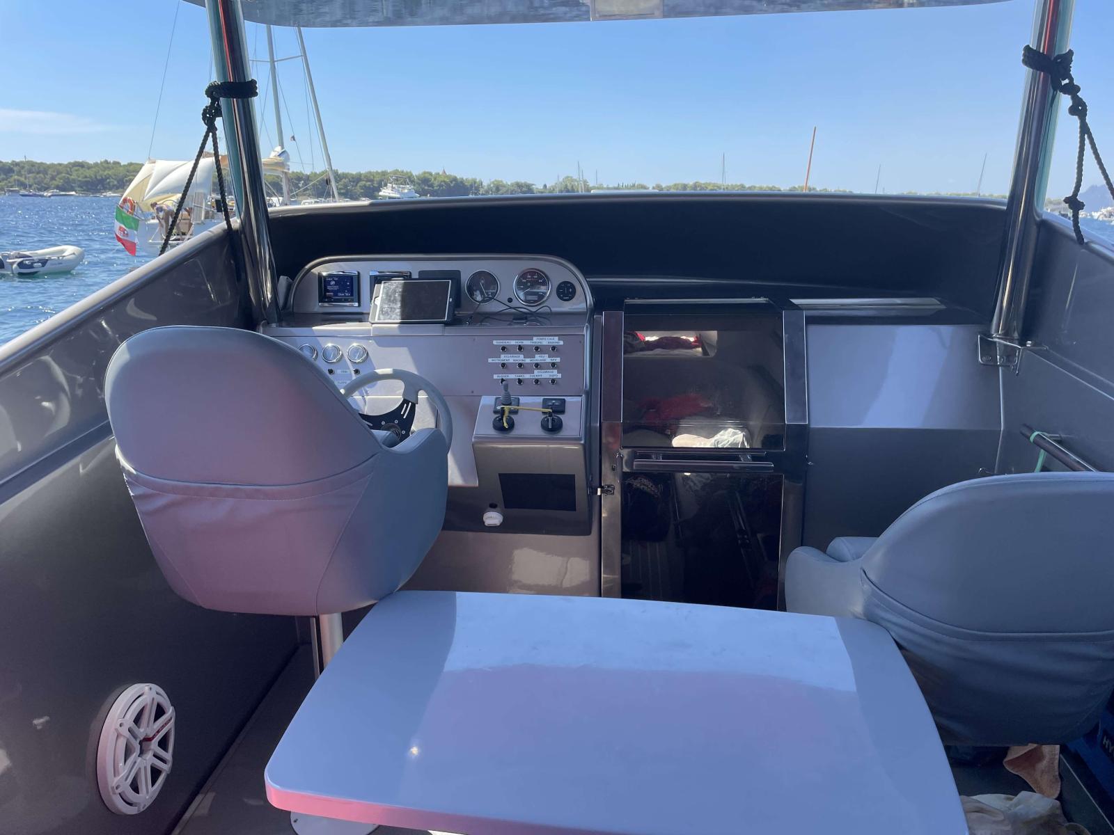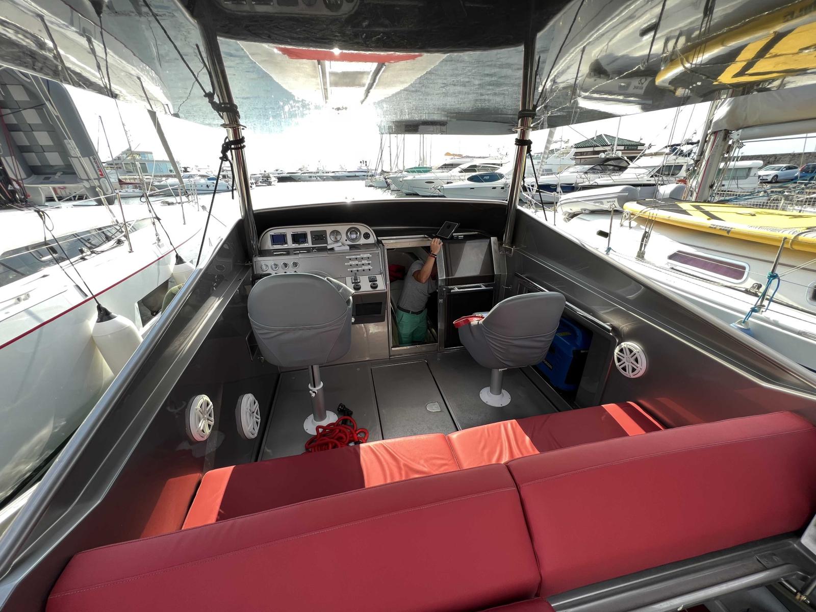 Vous trouverez à l'extérieur un cockpit bien aménagé avec un T-TOP sur mesure et des selleries de qualité.