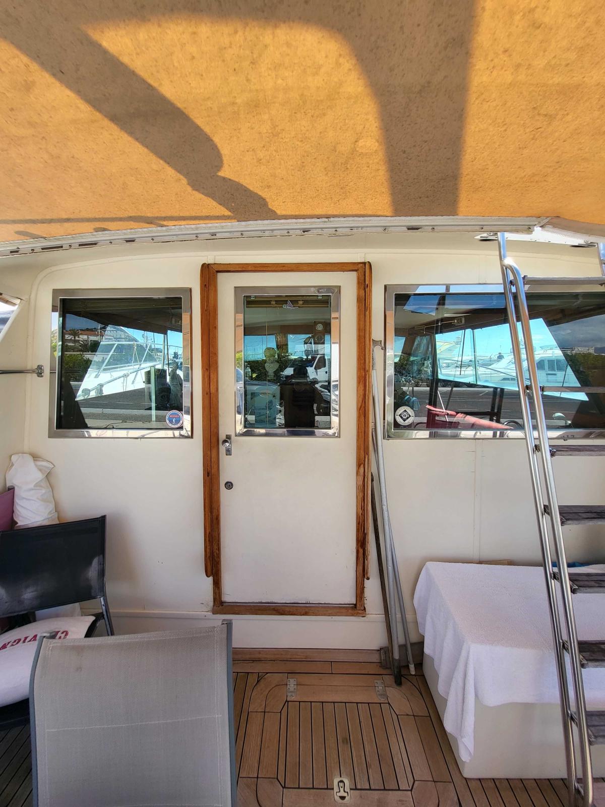 Le Hatteras 46 présente un design classique avec un salon spacieux, une cuisine entièrement équipée et une dinette confortable. Le yacht dispose également d’un grand cockpit avec une station de pêche et une porte à imposte pour un accès facile à l’eau. Il est propulsé par deux moteurs diesel et a une vitesse de croisière d’environ 20 noeuds.