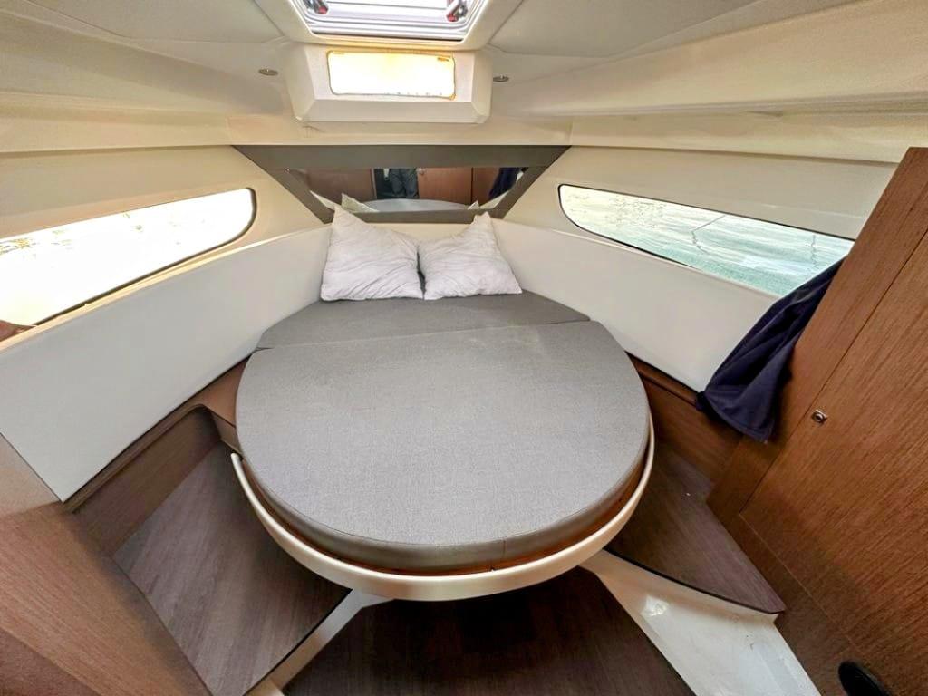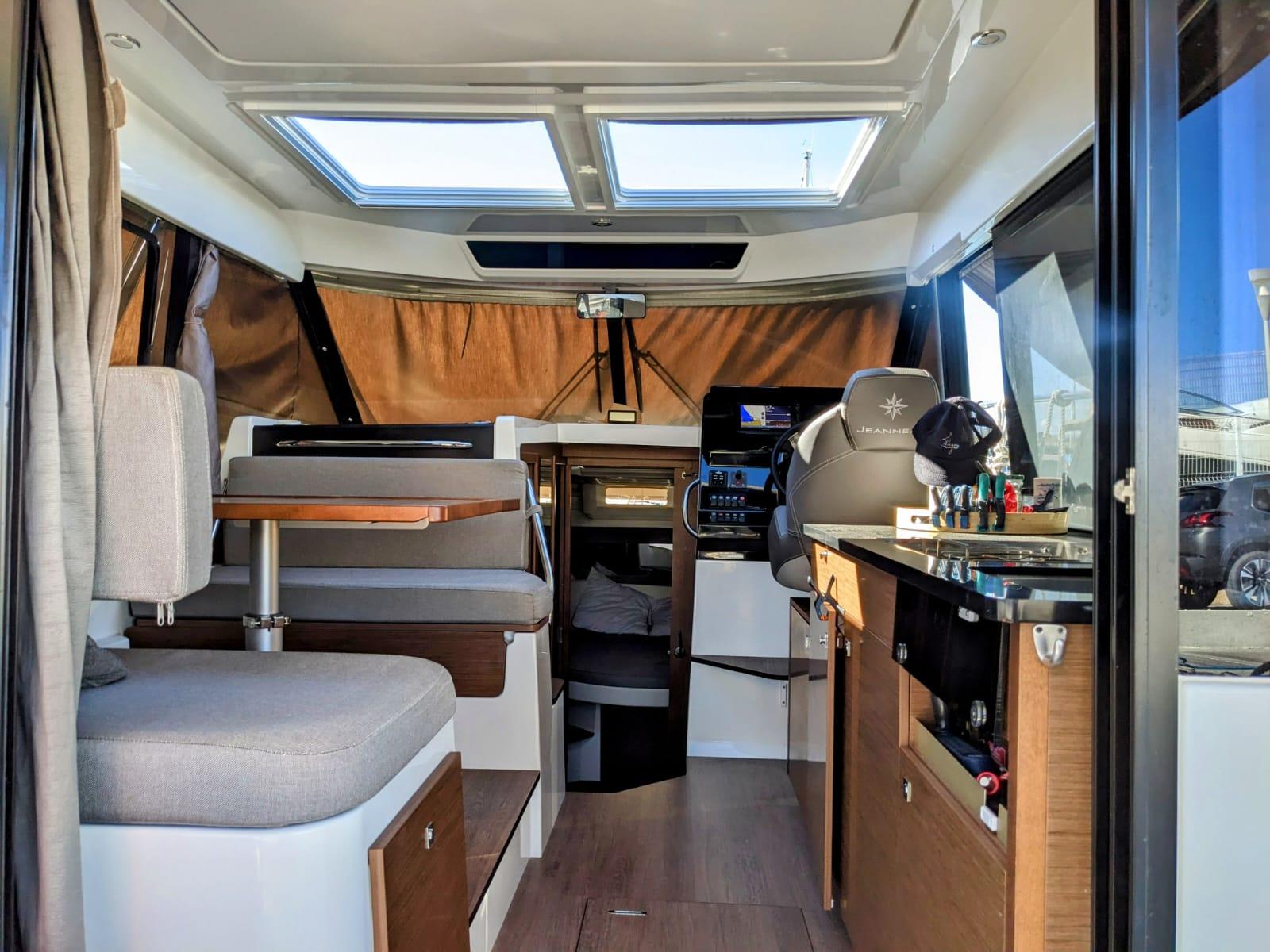 Le vaste carré se convertit en quelques secondes en un couchage double d’appoint. L’espace cuisine avec réchaud, évier et plan de travail, très fonctionnel, permet d’assurer les repas du quotidien. Depuis la timonerie, lumineuse et parfaitement ventilée, on accède en quelques pas au vaste salon de cockpit, qui annonce de merveilleux moments dans des endroits de rêve. Le Merry Fisher 1095 est un bateau conçu pour la convivialité et les plaisirs nautiques partagés.