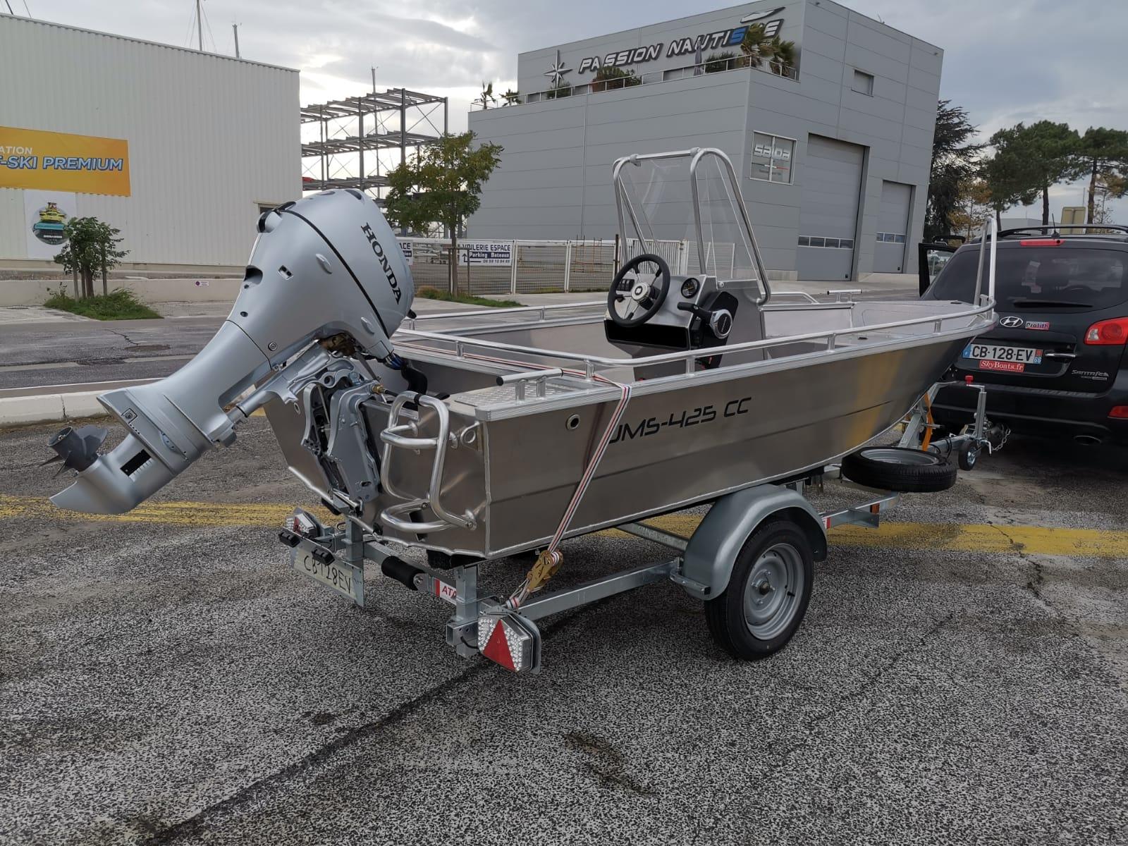 100% en aluminium de qualité marine l'UMS 425 CC est un open avec une console centrale ou déportée à tribord.