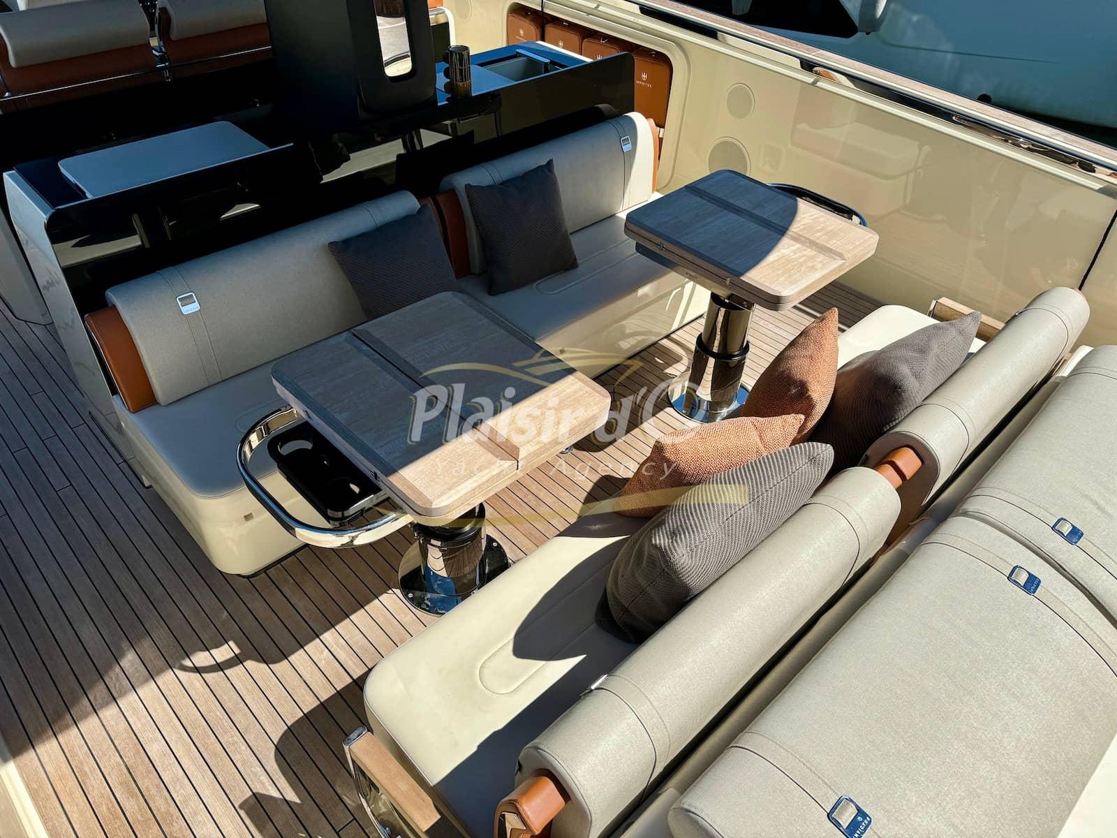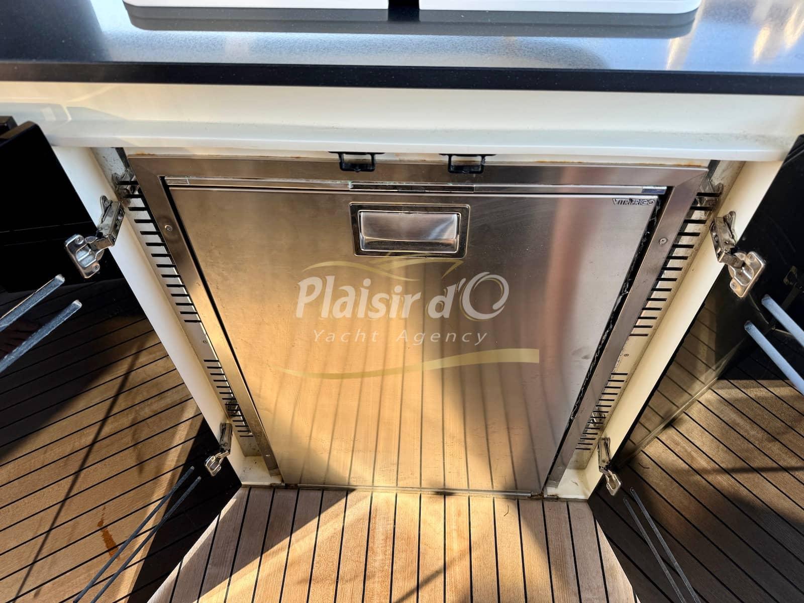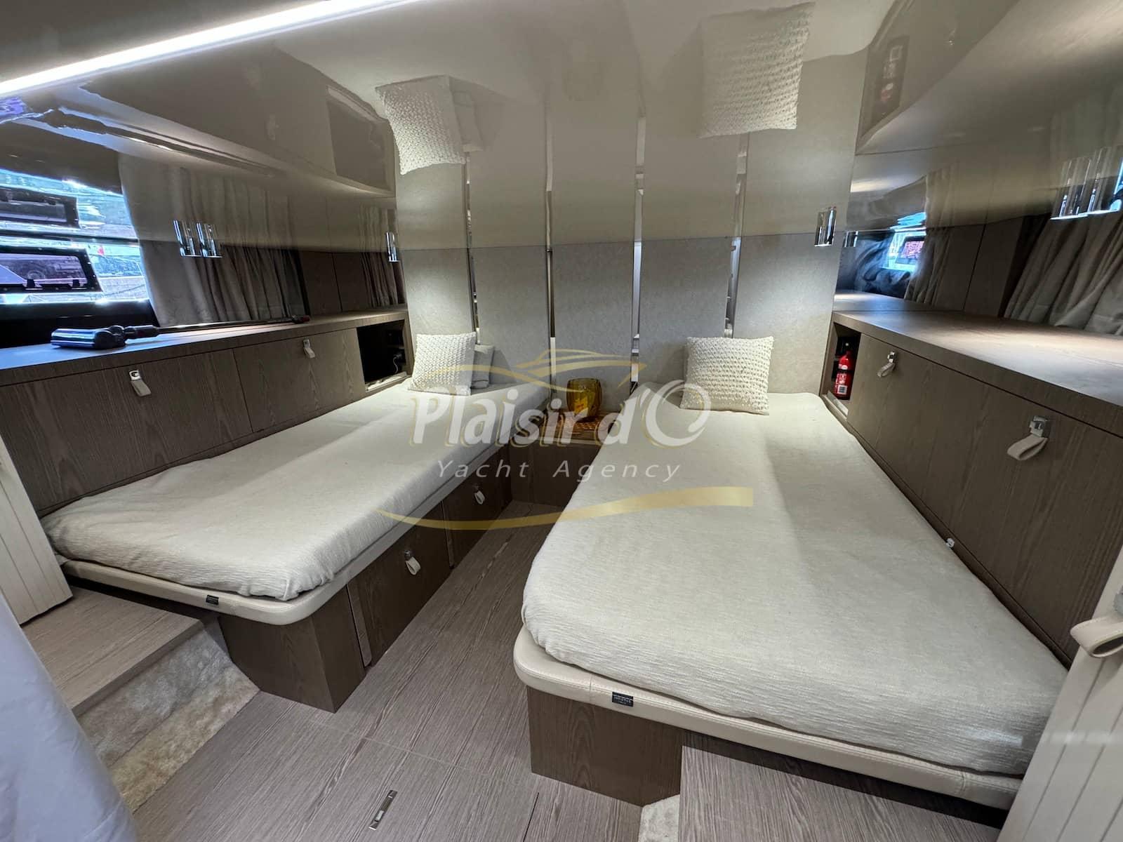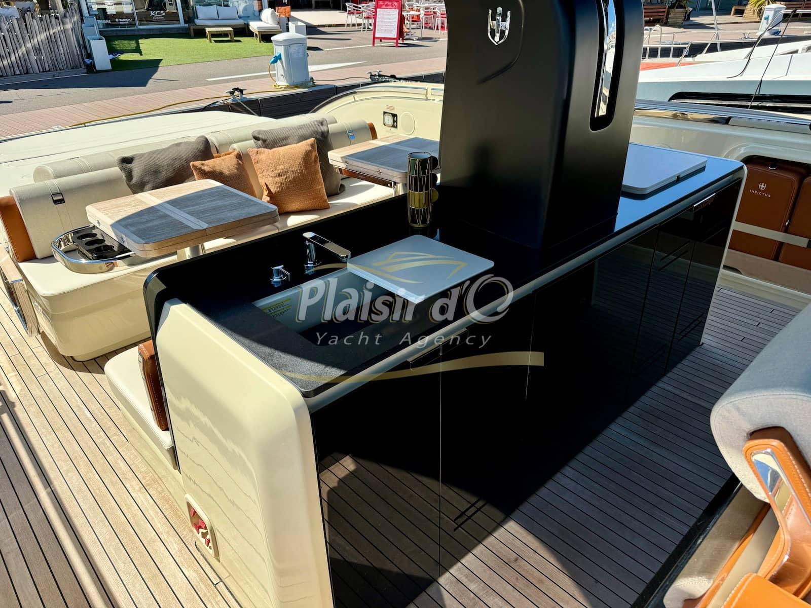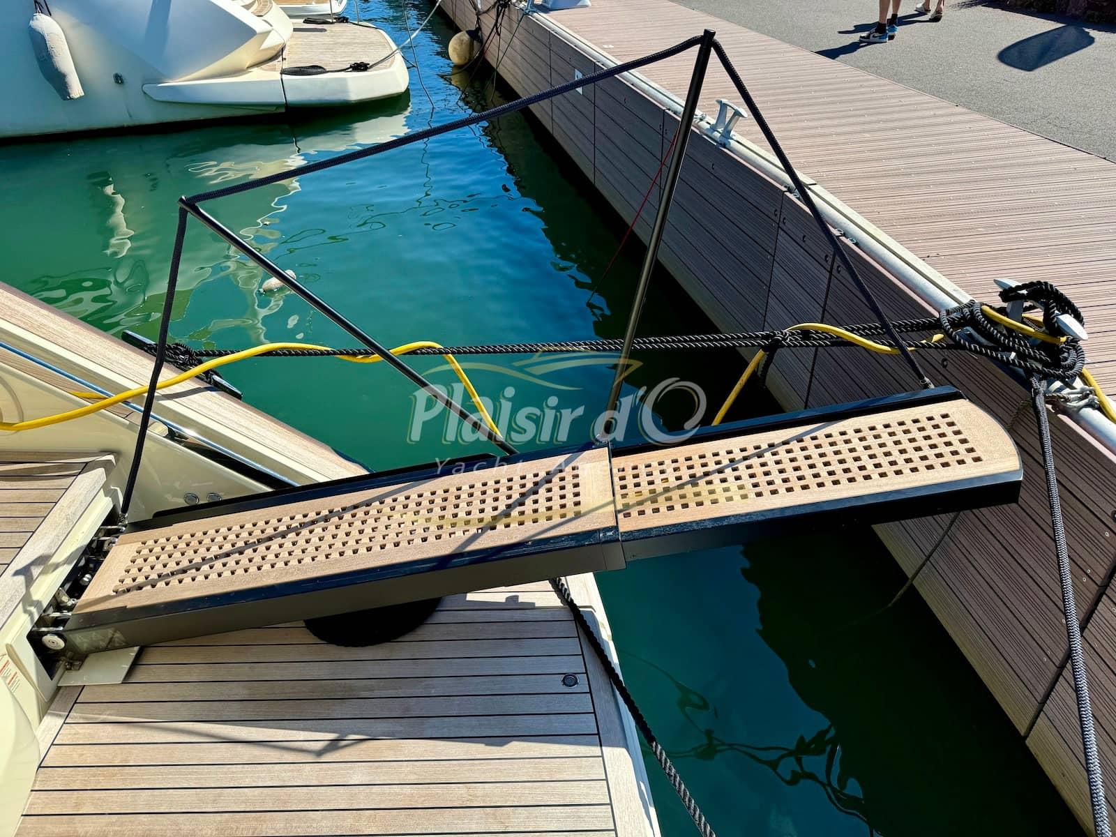 TOUTES OPTIONS : Stabilisateur gyroscopique, plateforme hydraulique immangeable, passerelle hydraulique rétractable , Volvo Penta IPS 650, générateur Fisher panda, climatisation réversible tropicale, 2 écran Garmin 16”, VHF Garmin, guindeau électrique, ice maker, machine à café Nespresso, 2 réfrigérateur grandes capacités, congélateur, extension taud de soleil arrière avec mats carbone, éclairage sous marin, garage à annexe avec treuil electrique, système HIFI Invictus Lounge system Fusion 16 haut-parleur …