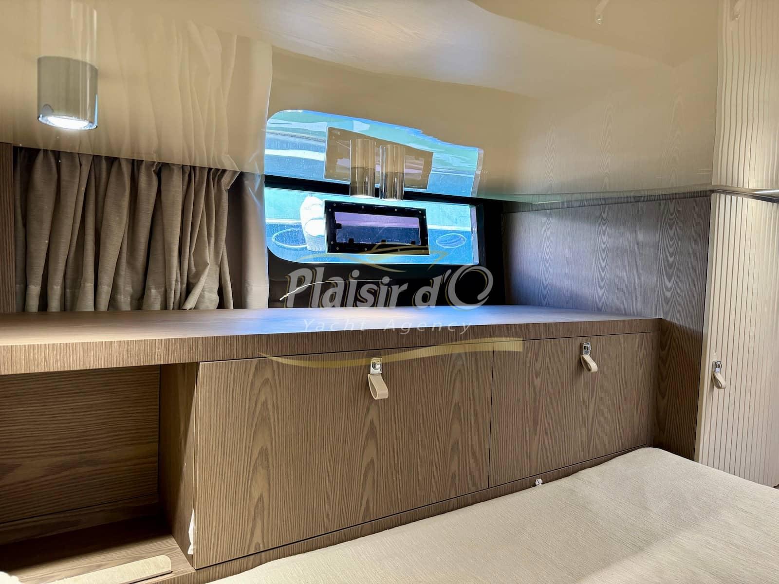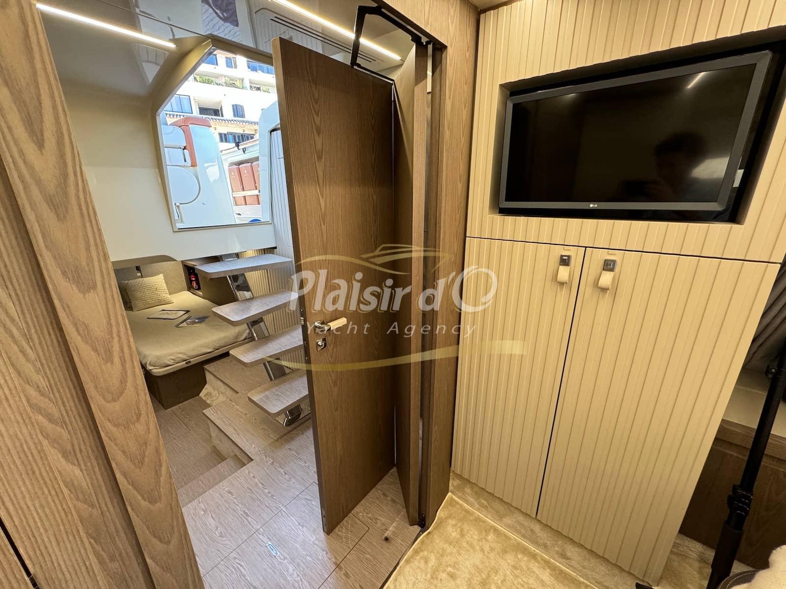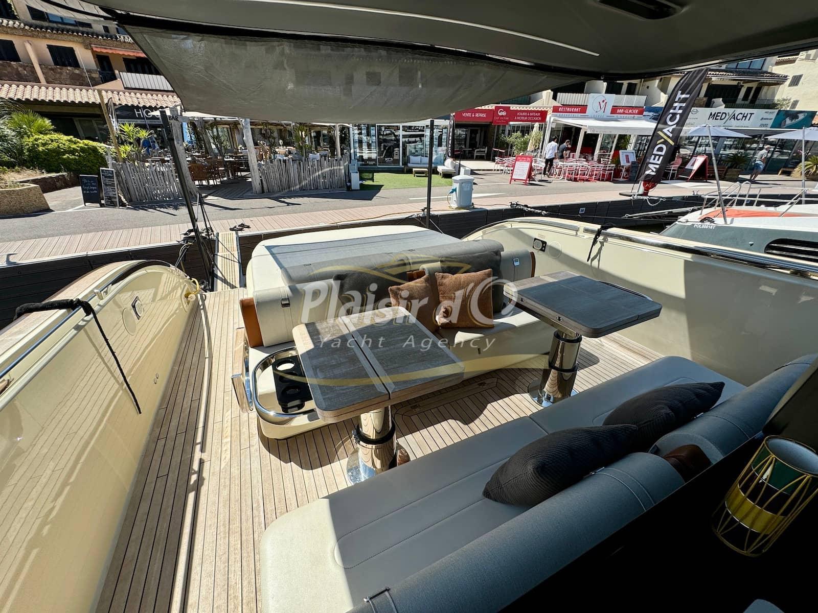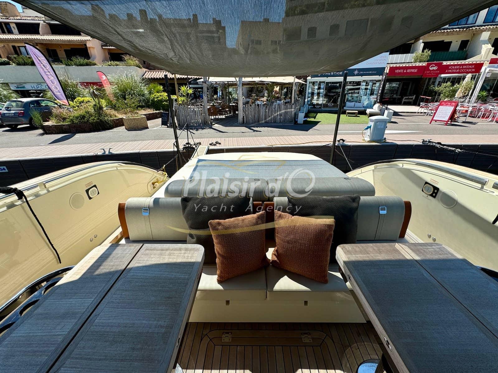 TOUTES OPTIONS : Stabilisateur gyroscopique, plateforme hydraulique immangeable, passerelle hydraulique rétractable , Volvo Penta IPS 650, générateur Fisher panda, climatisation réversible tropicale, 2 écran Garmin 16”, VHF Garmin, guindeau électrique, ice maker, machine à café Nespresso, 2 réfrigérateur grandes capacités, congélateur, extension taud de soleil arrière avec mats carbone, éclairage sous marin, garage à annexe avec treuil electrique, système HIFI Invictus Lounge system Fusion 16 haut-parleur …