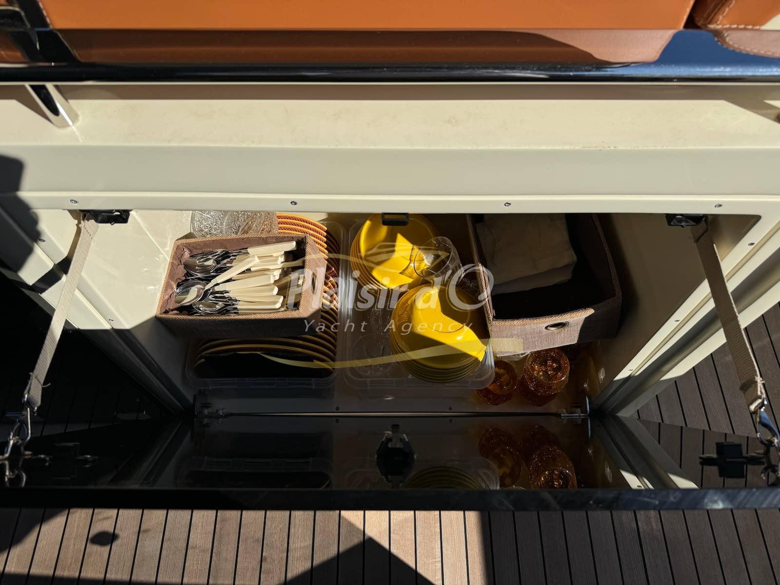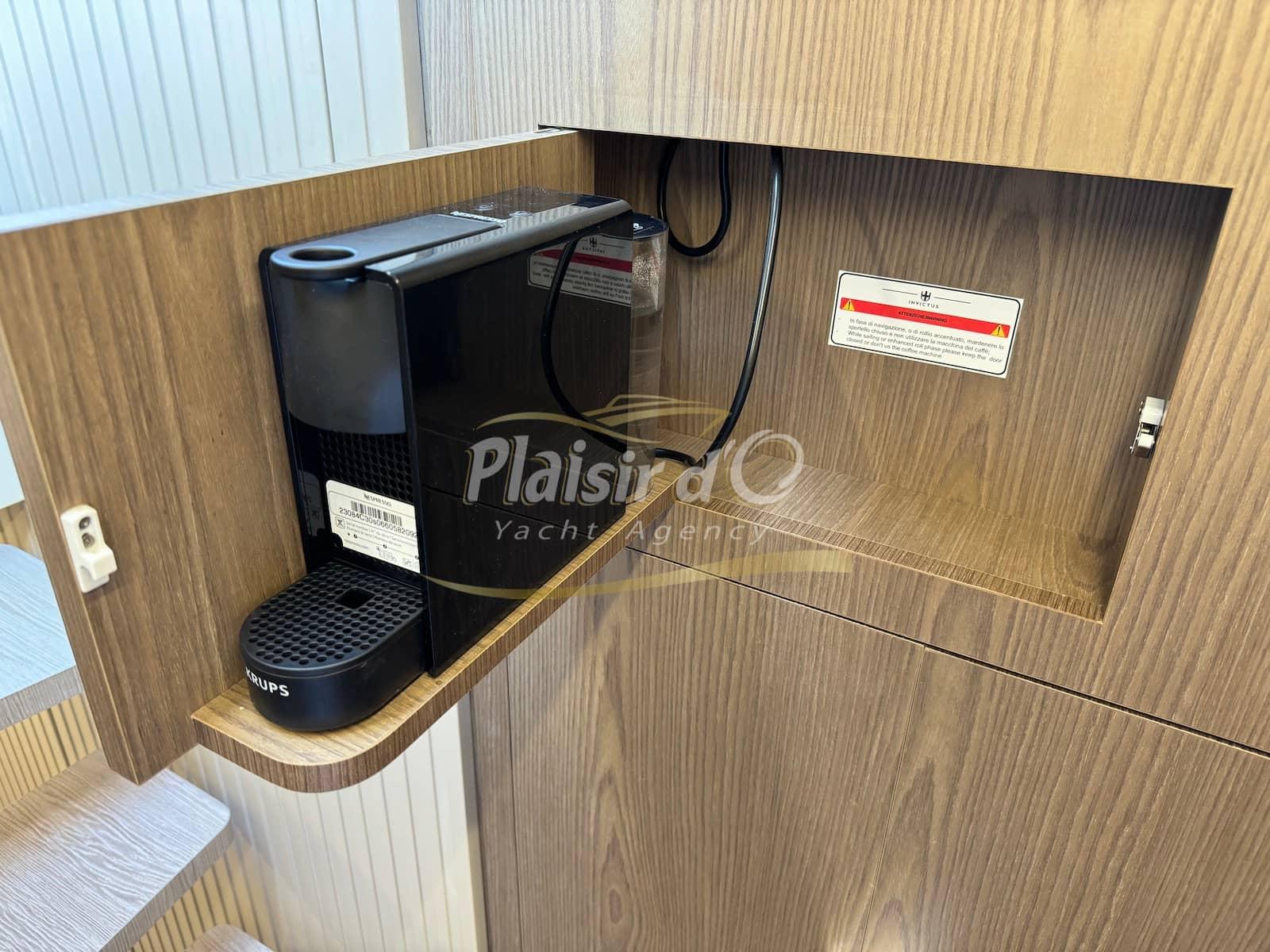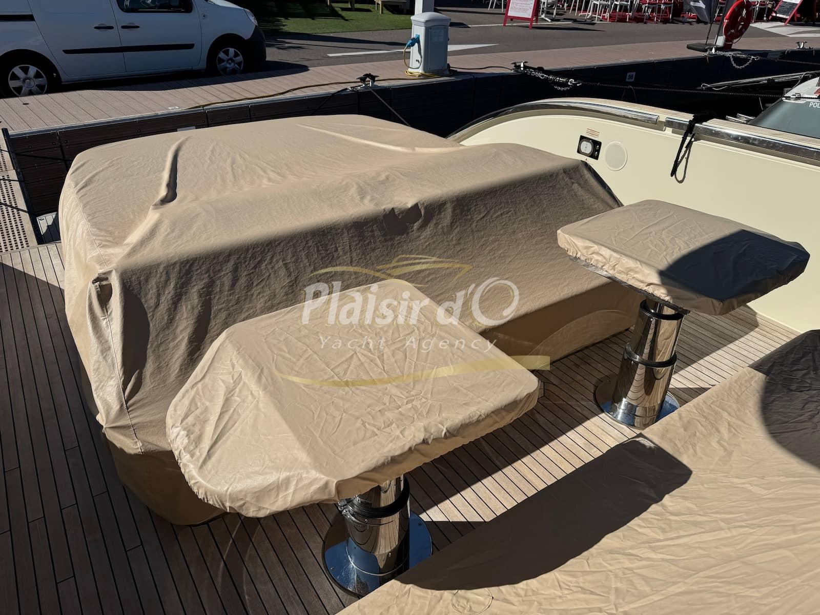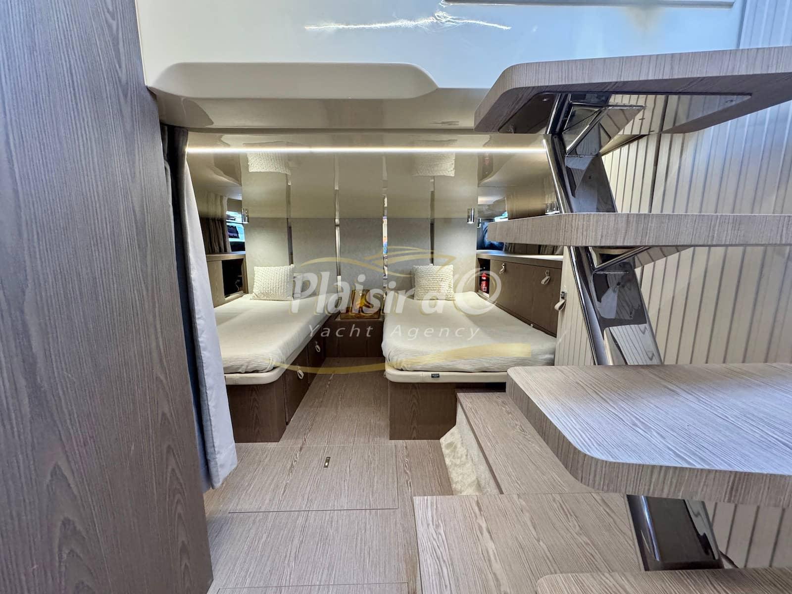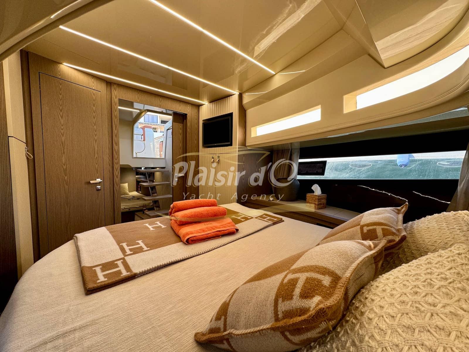 TOUTES OPTIONS : Stabilisateur gyroscopique, plateforme hydraulique immangeable, passerelle hydraulique rétractable , Volvo Penta IPS 650, générateur Fisher panda, climatisation réversible tropicale, 2 écran Garmin 16”, VHF Garmin, guindeau électrique, ice maker, machine à café Nespresso, 2 réfrigérateur grandes capacités, congélateur, extension taud de soleil arrière avec mats carbone, éclairage sous marin, garage à annexe avec treuil electrique, système HIFI Invictus Lounge system Fusion 16 haut-parleur …