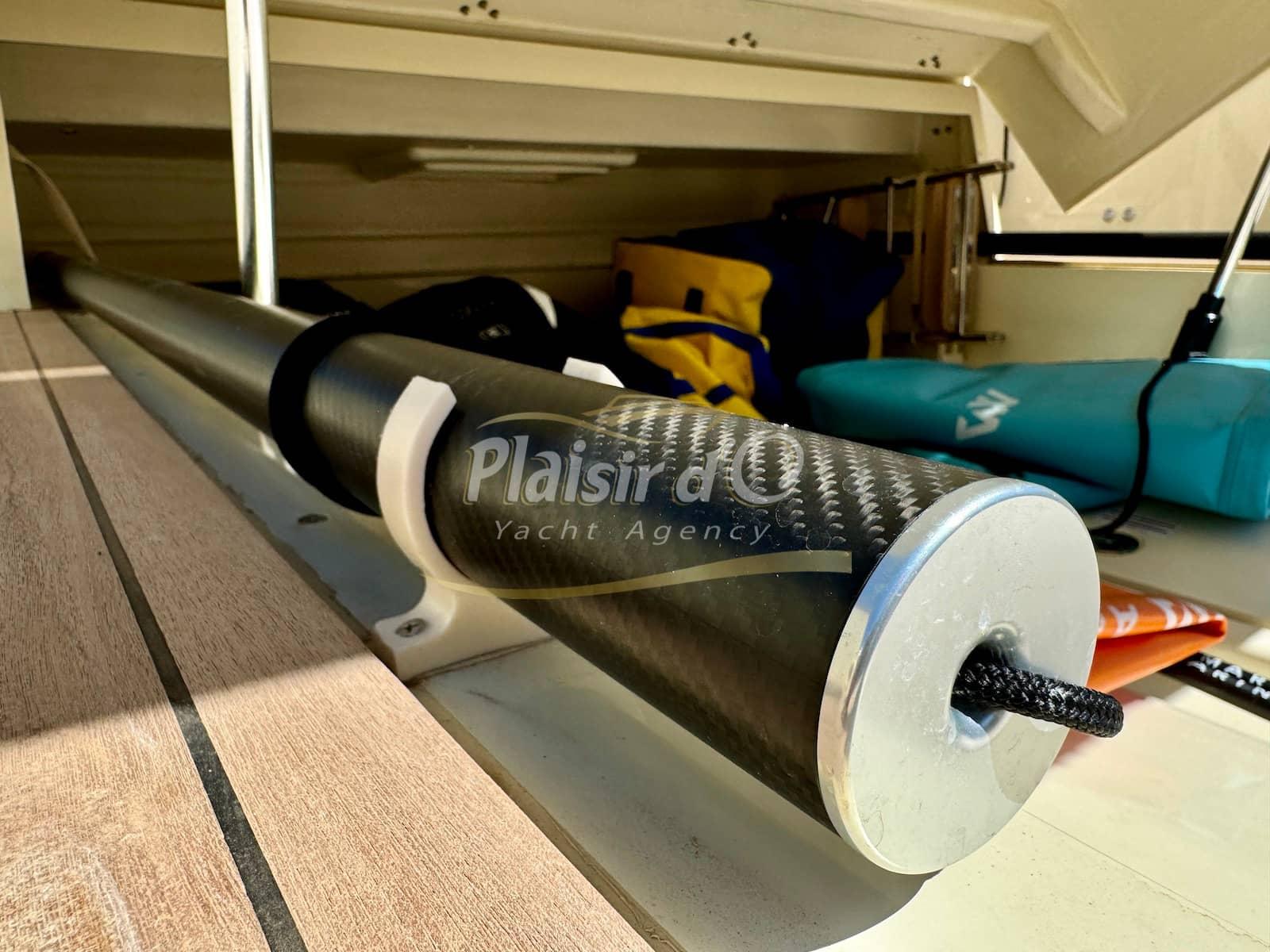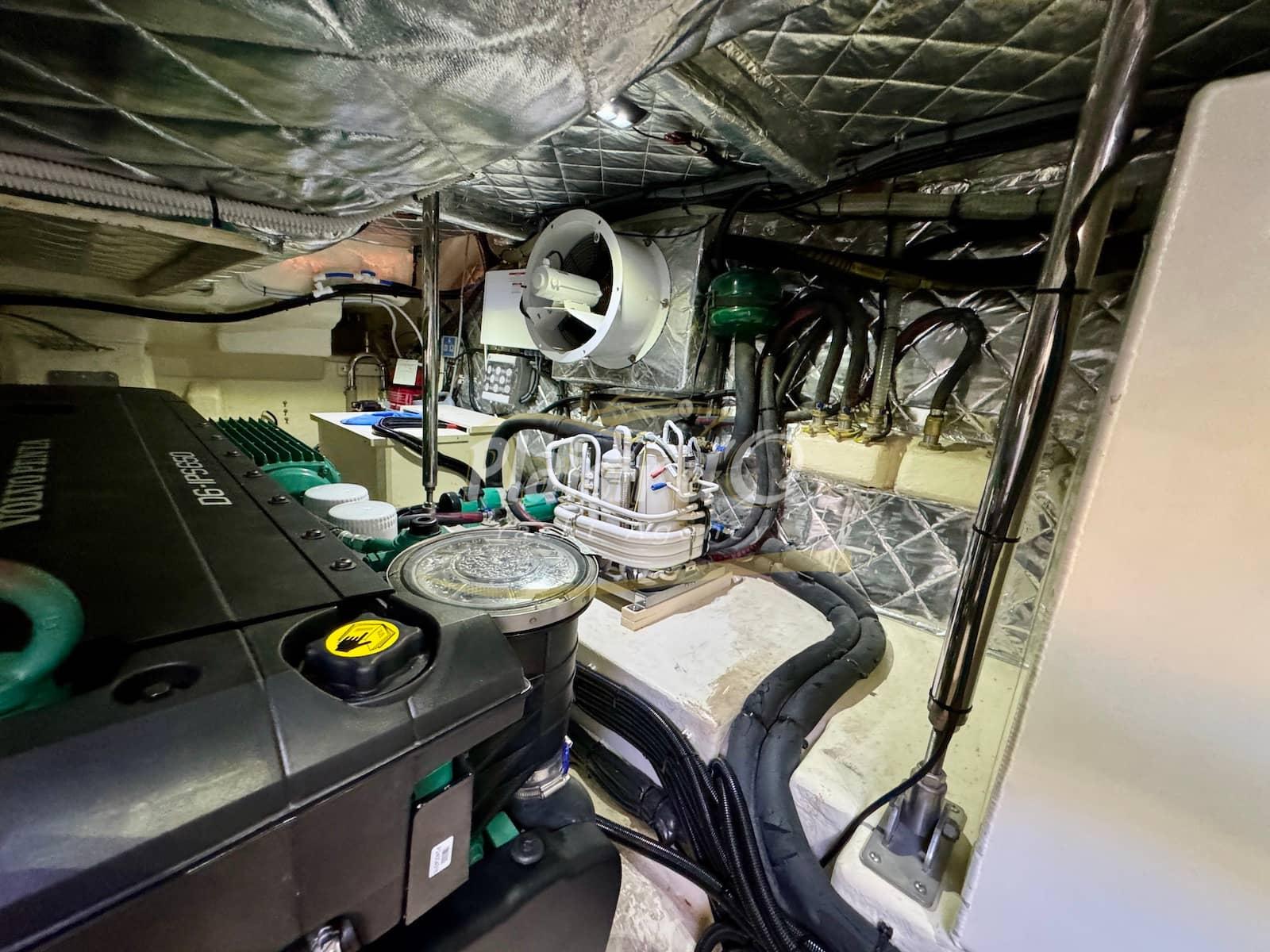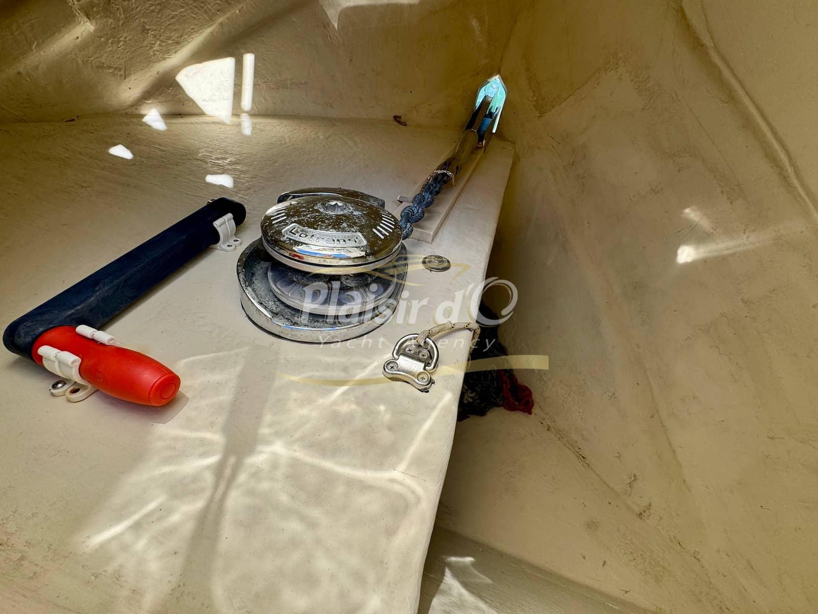 Toujours hiverné à terre. Le bateau, actuellement hiverné sous hangar, sera vendu prêt à naviguer pour la saison 2025, toutes révisions faites par agent Volvo, ainsi que l'anti-fouling.