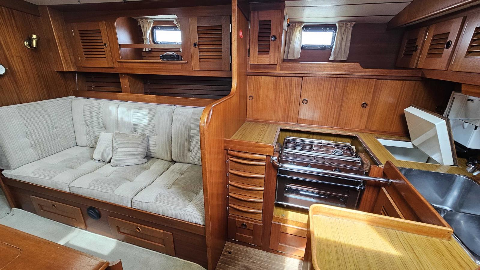 Magnifique construction suèdoise, cet HALLBERG RASSY 42 E est dans un état général surprenant, très entretenu par son propriétaire, seul le pont en teck est à reprendre.A SAISIR.