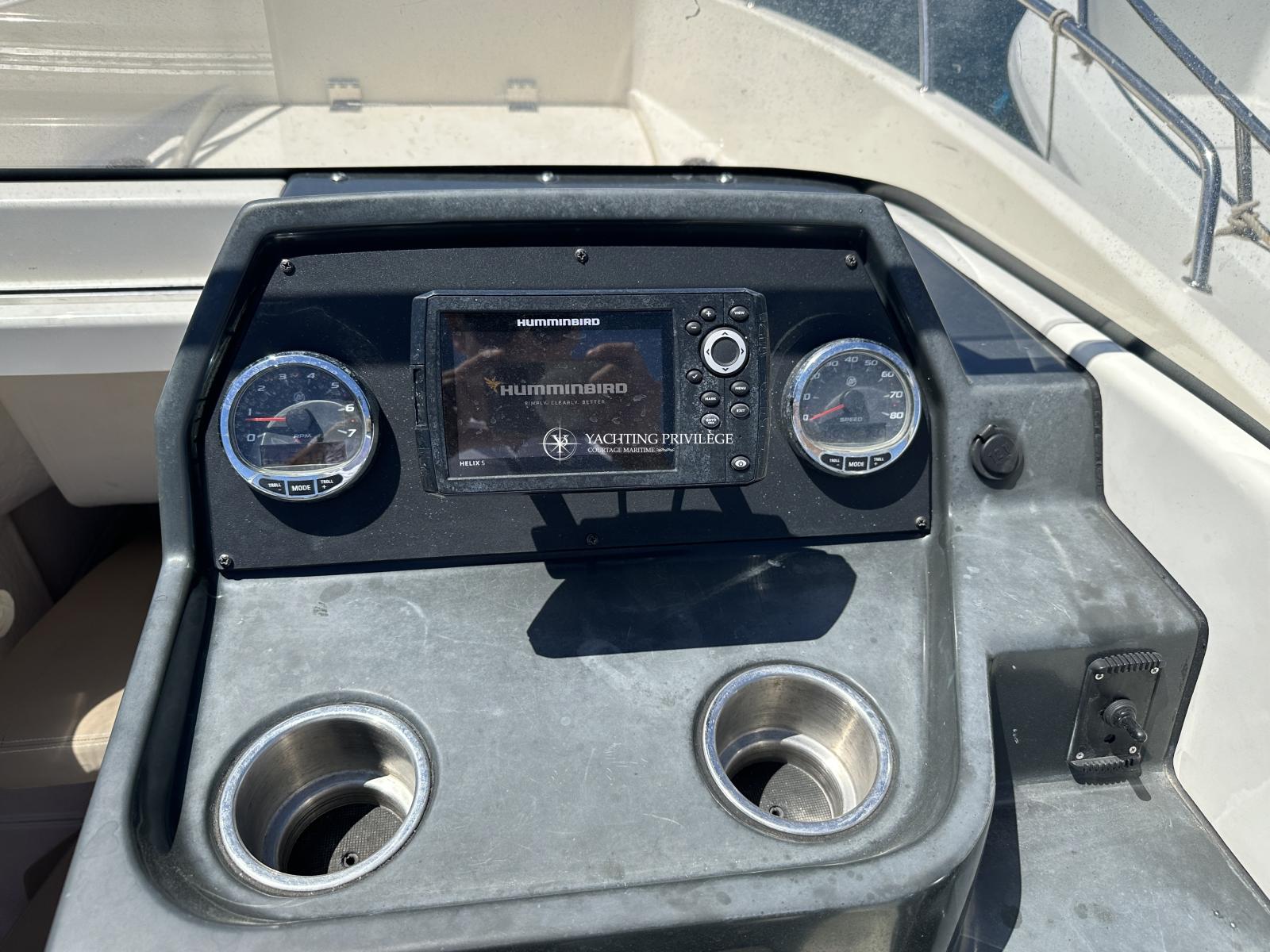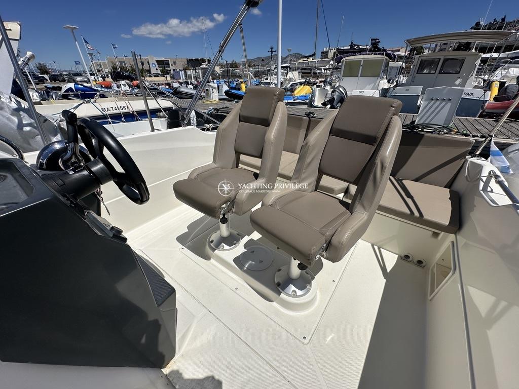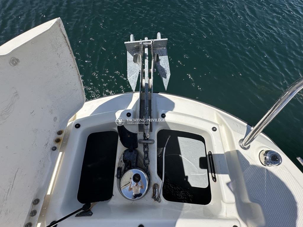 Le bateau est équipé d’un GPS, sondeur, loch-speedo Humminbird, guideau électrique, bain de soleil avant, carré arrière avec table de cockpit et sellerie, bimini, système de son Bluetooth, mât de ski..