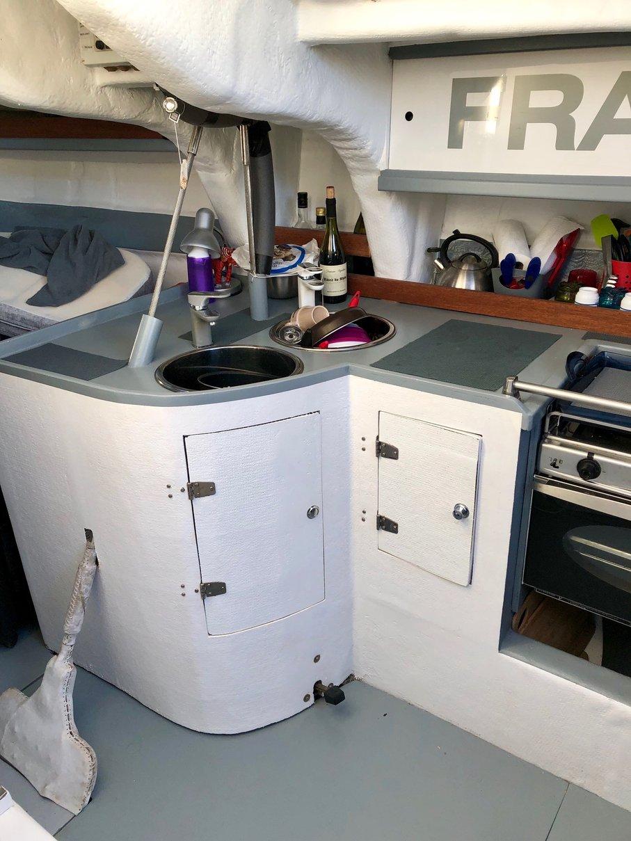 CONFORT : Chauffage type Webasto 4000w, eau sous pression (groupe 2018) et circuit fixe pression à quai. Chauffe eau. Cuisine équipée double évier,gazinière four inox,frigo,micro ondes.