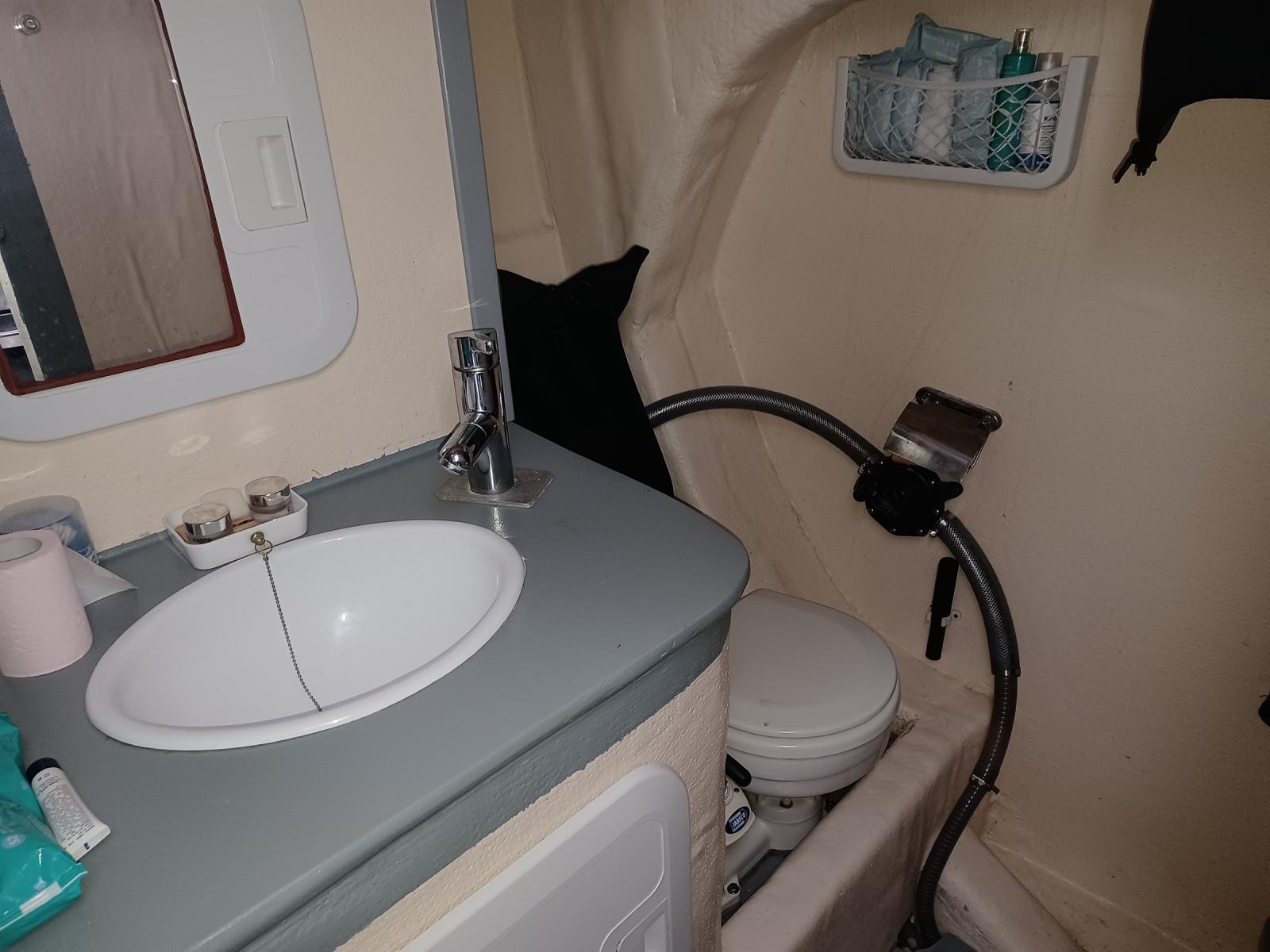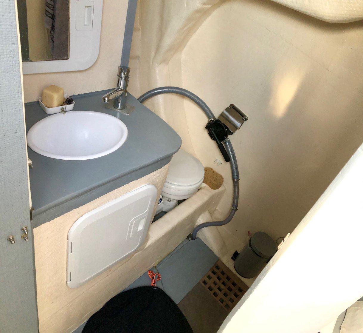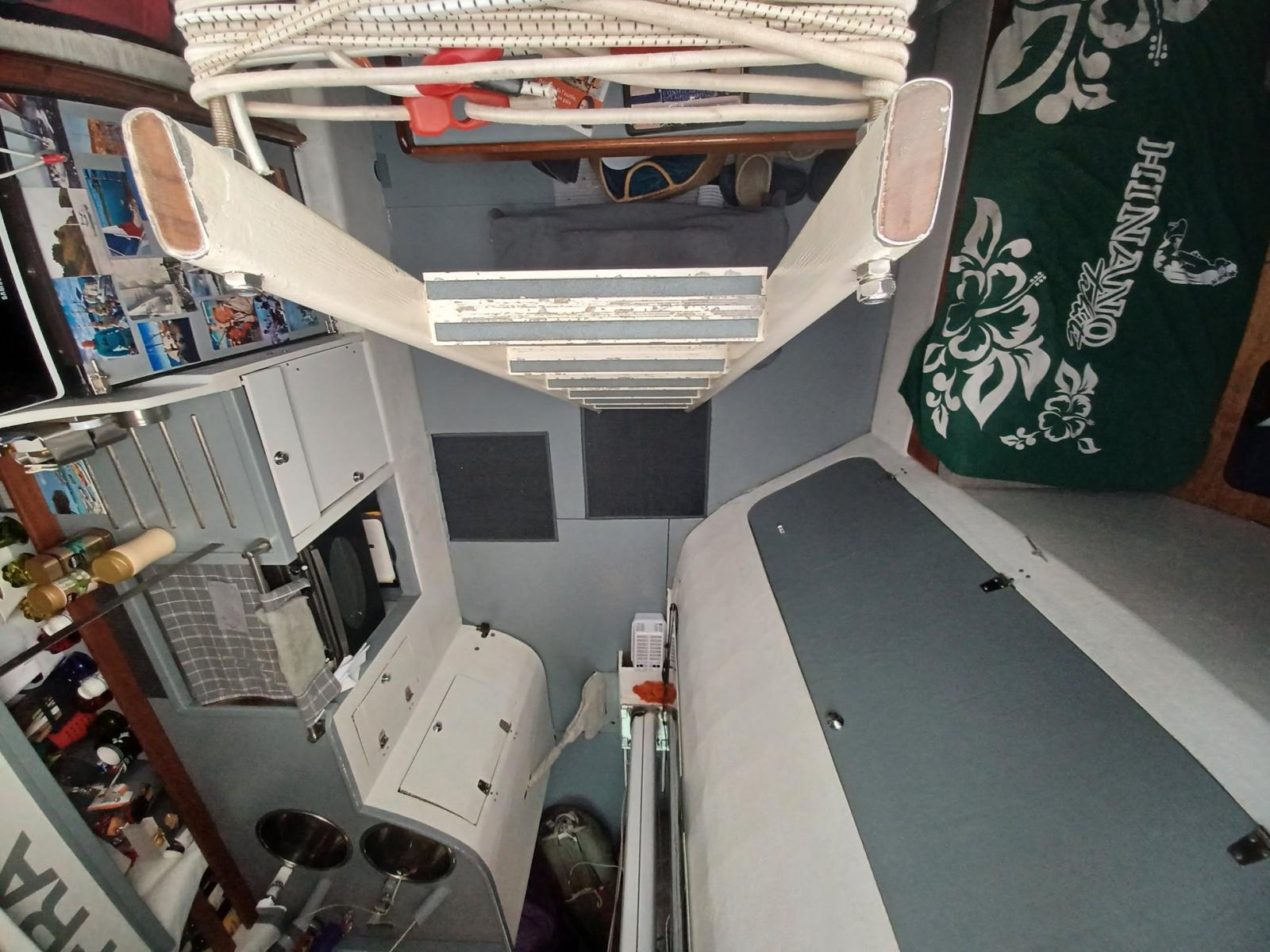 AMENAGEMENT : CONFORT CUISINE équipée double évier,gaziniére four inox,frigo,micro ondes. SALLE DE BAIN Douche Evier WC eau chaude COUCHAGES 6 avec un lit double sur lattes et carré transformable SELLERIE TISSU INTÉRIEUR GRIS de 2018, Taud de soleil et taud de pont pour Hivernage. Capote de descente 2020