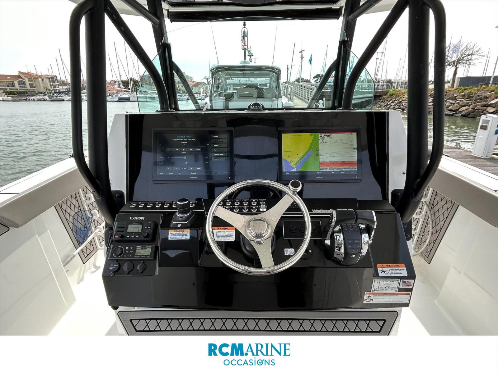 WELLCRAFT 352 Fisherman – propulsé par 3 x 300 cv Mercury, affichant seulement 150 heures moteur, avec un historique d’entretien complet et un suivi professionnel irréprochable.