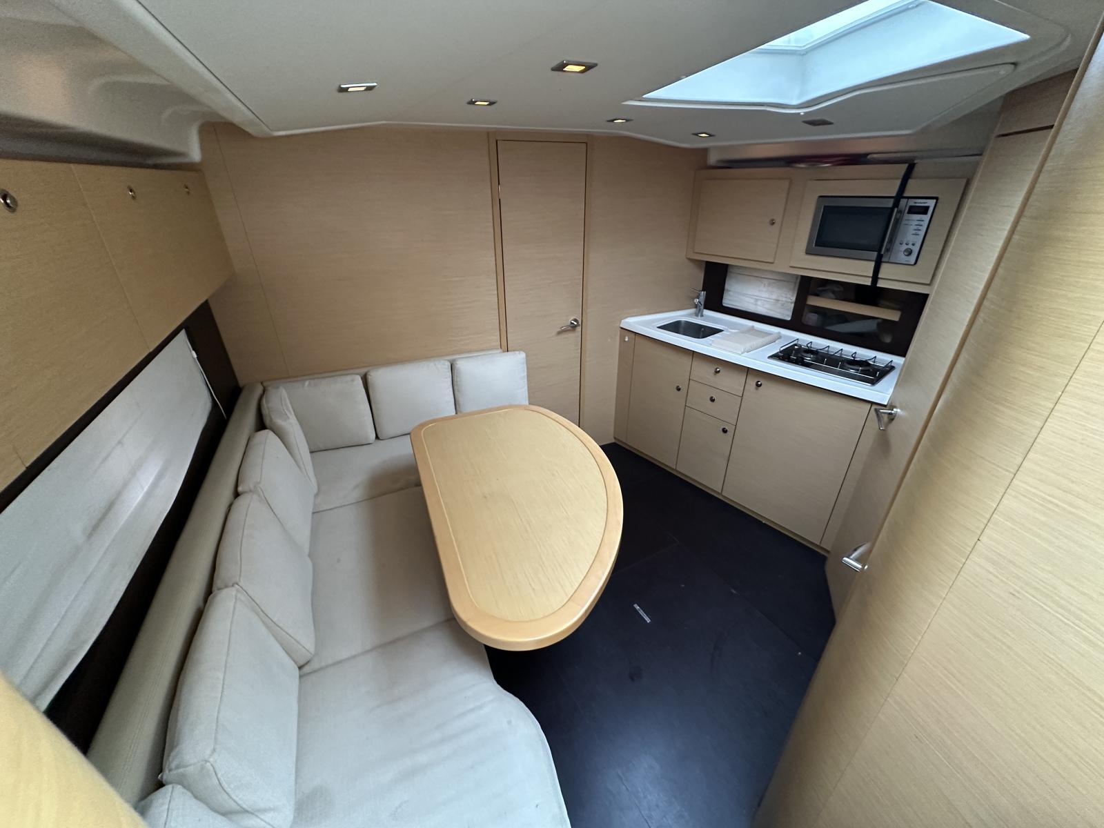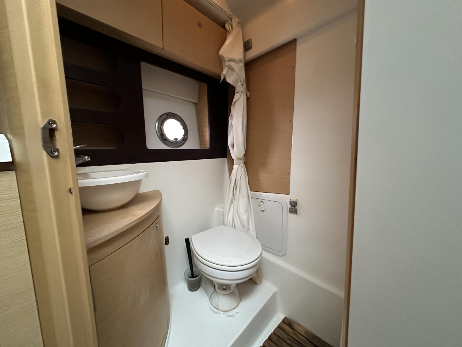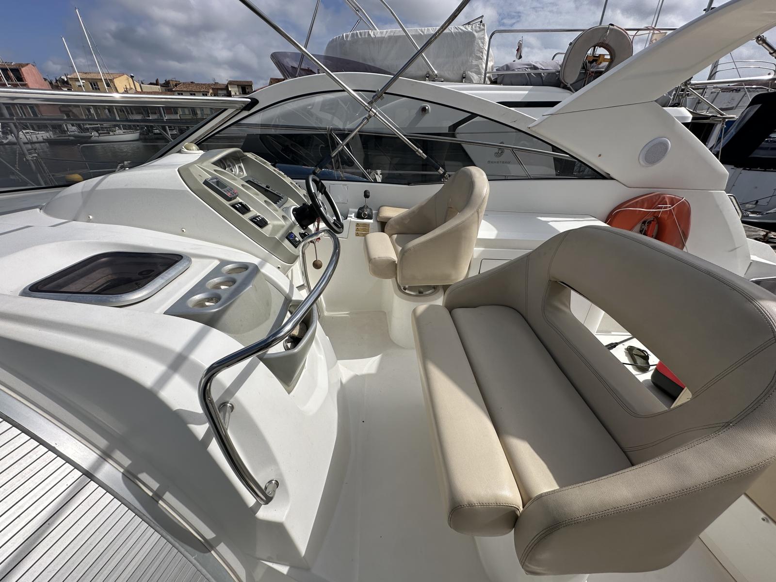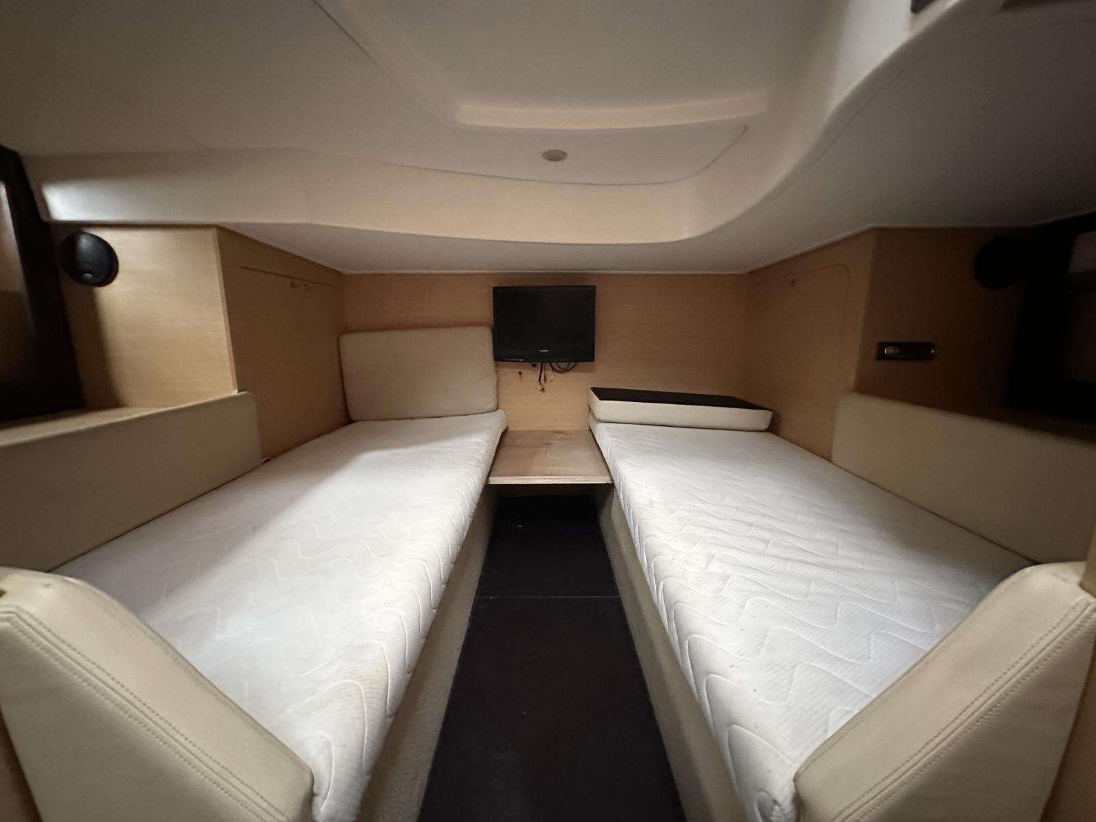 Équipé avec Pack raymarine Gps sondeur traceur E120, pilote automatique, Vhf navicom, hifi fusion MSRA70, propulseur d’étrave, 2 réfrigérateurs, chauffe eau, salle de bain avec wc et douche, deux cabines, 6 couchages au total, salon, cuisine, 2 feu gaz, cuisine extérieure avec évier et plancha électrique, carré transformable extérieur, bains de soleil avant et arrière, plateforme de bain en teck, passerelle hydraulique, Bimini et taud de camping (non visibles sur les photos).