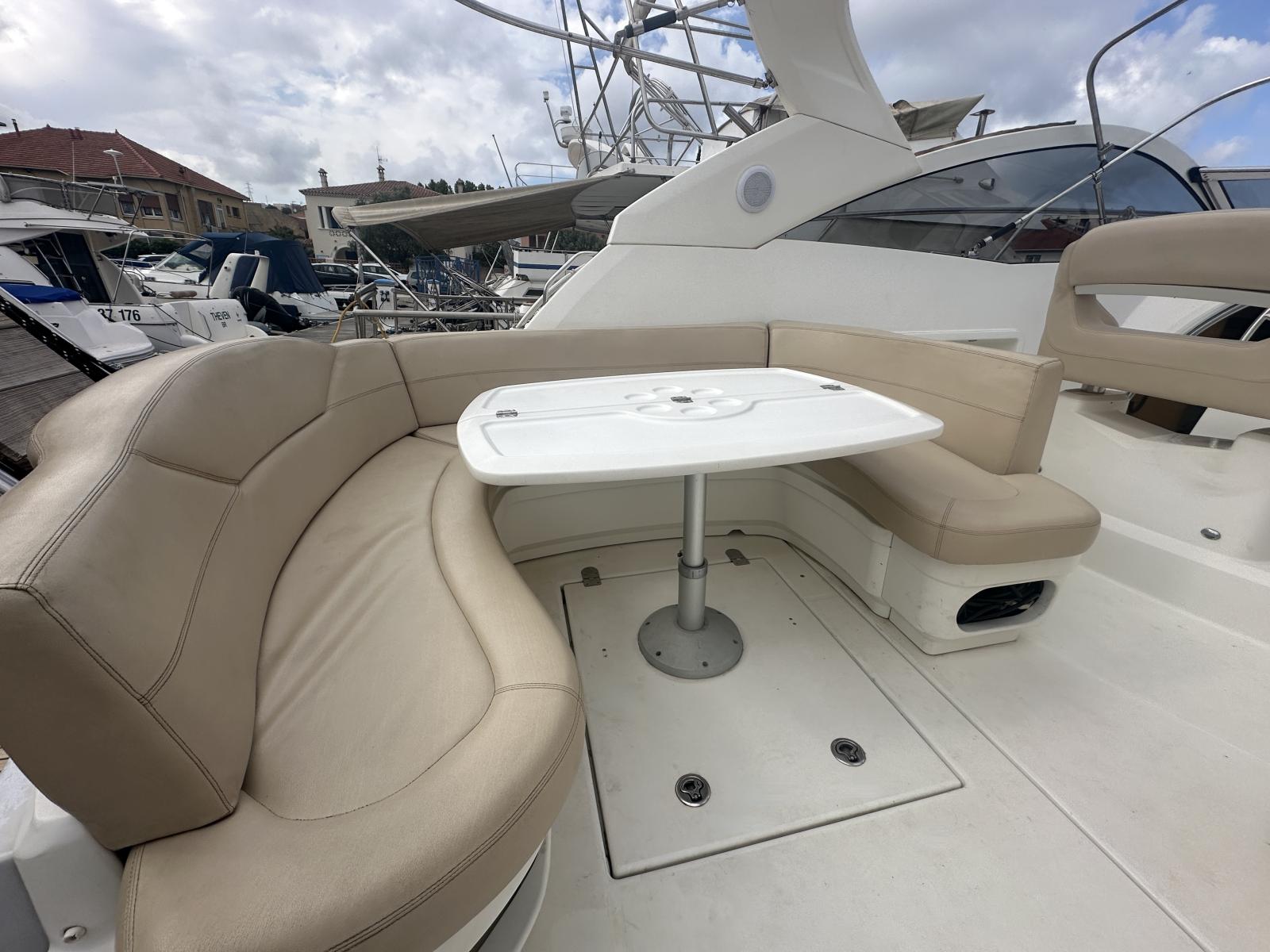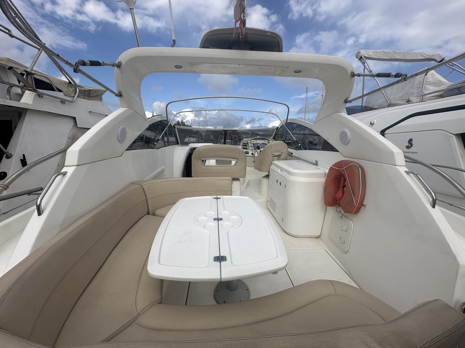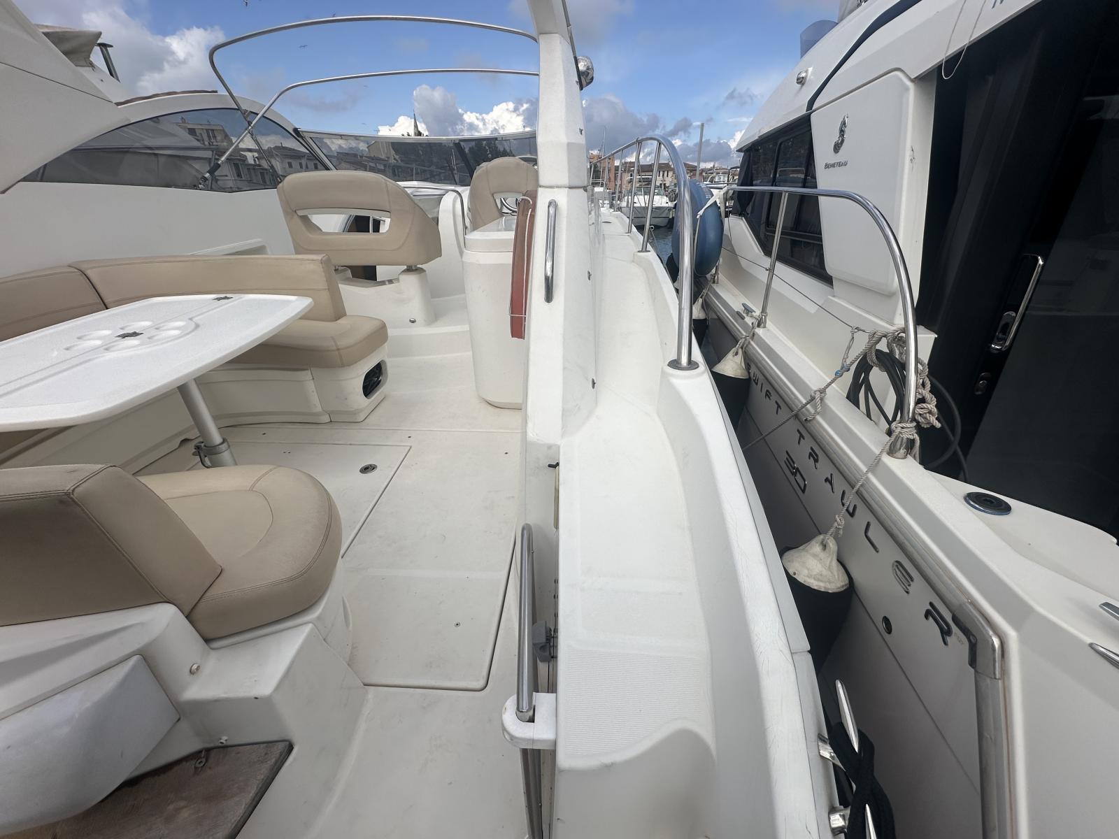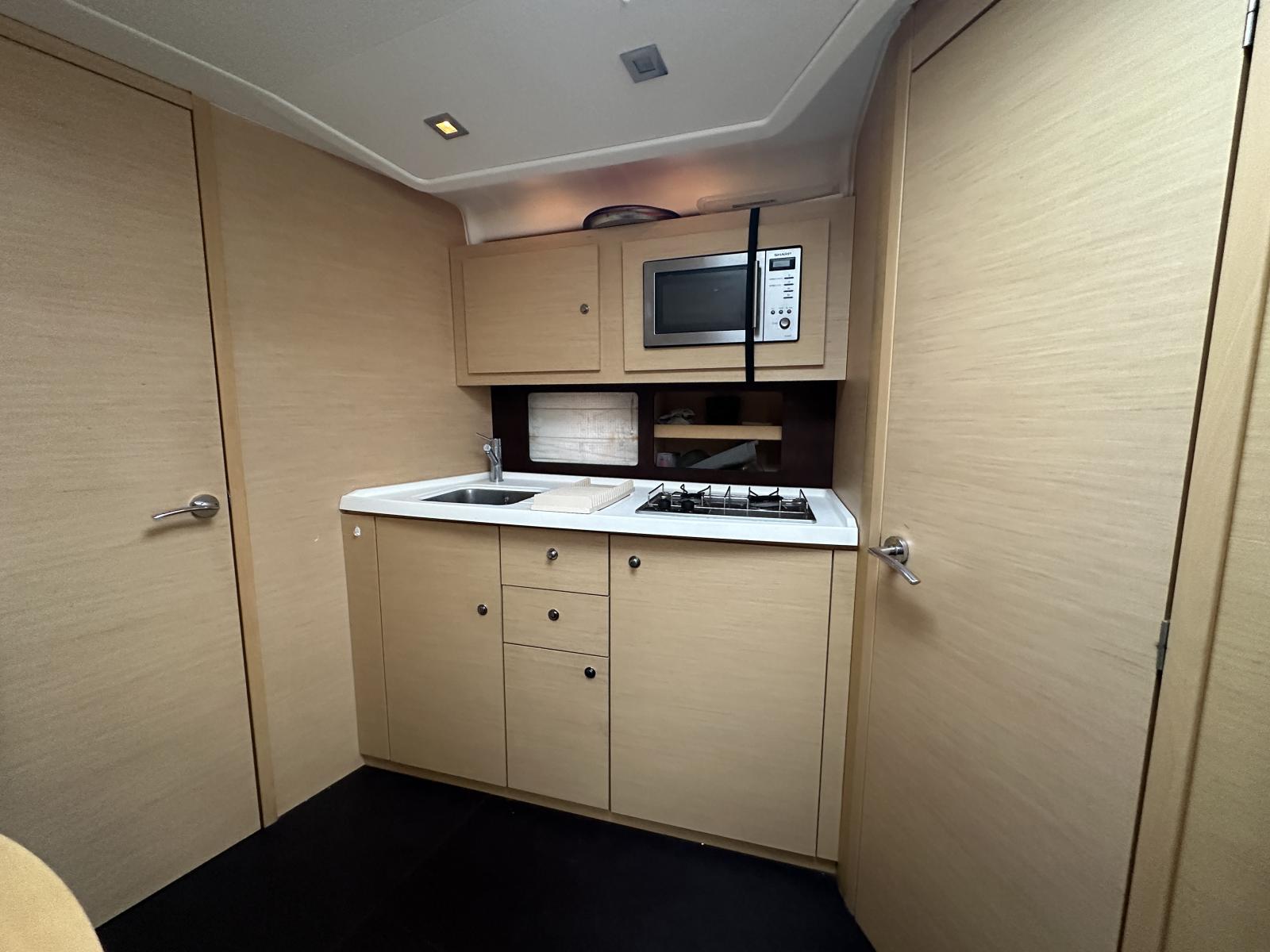 Équipé avec Pack raymarine Gps sondeur traceur E120, pilote automatique, Vhf navicom, hifi fusion MSRA70, propulseur d’étrave, 2 réfrigérateurs, chauffe eau, salle de bain avec wc et douche, deux cabines, 6 couchages au total, salon, cuisine, 2 feu gaz, cuisine extérieure avec évier et plancha électrique, carré transformable extérieur, bains de soleil avant et arrière, plateforme de bain en teck, passerelle hydraulique, Bimini et taud de camping (non visibles sur les photos).