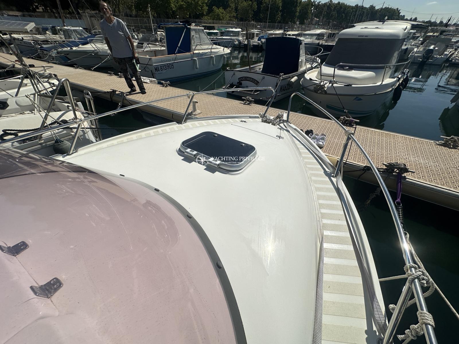 Le bateau est équipé d’un GPS, sondeur, loch-speedo Humminbird, bimini, porte canne, sellerie extérieure, douchette de cockpit, échelle de bain, carré transformable…