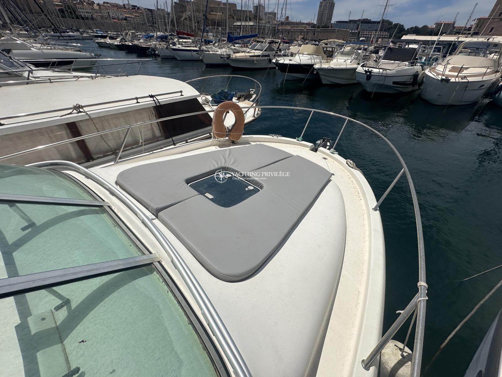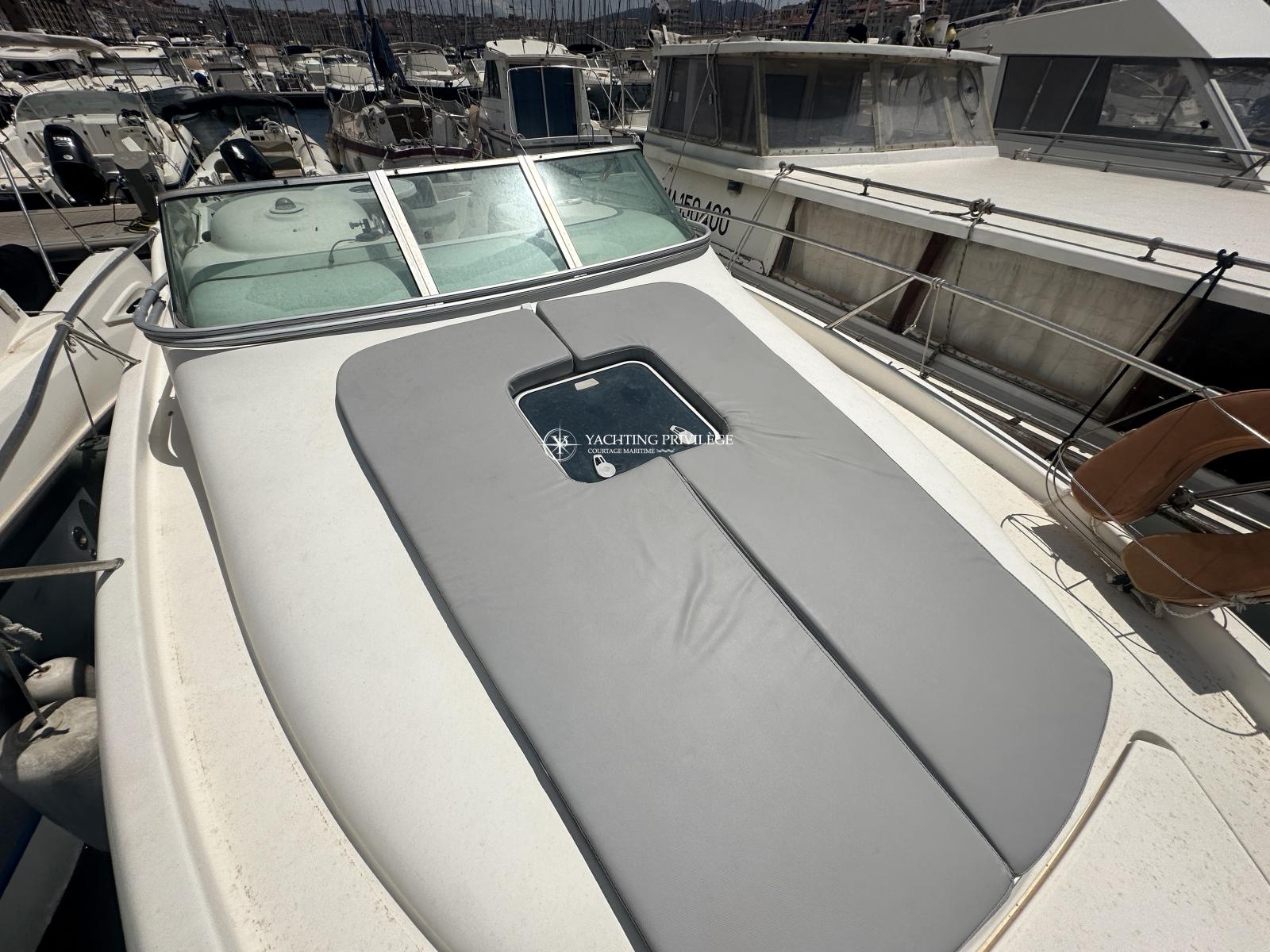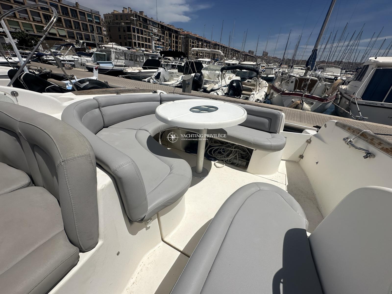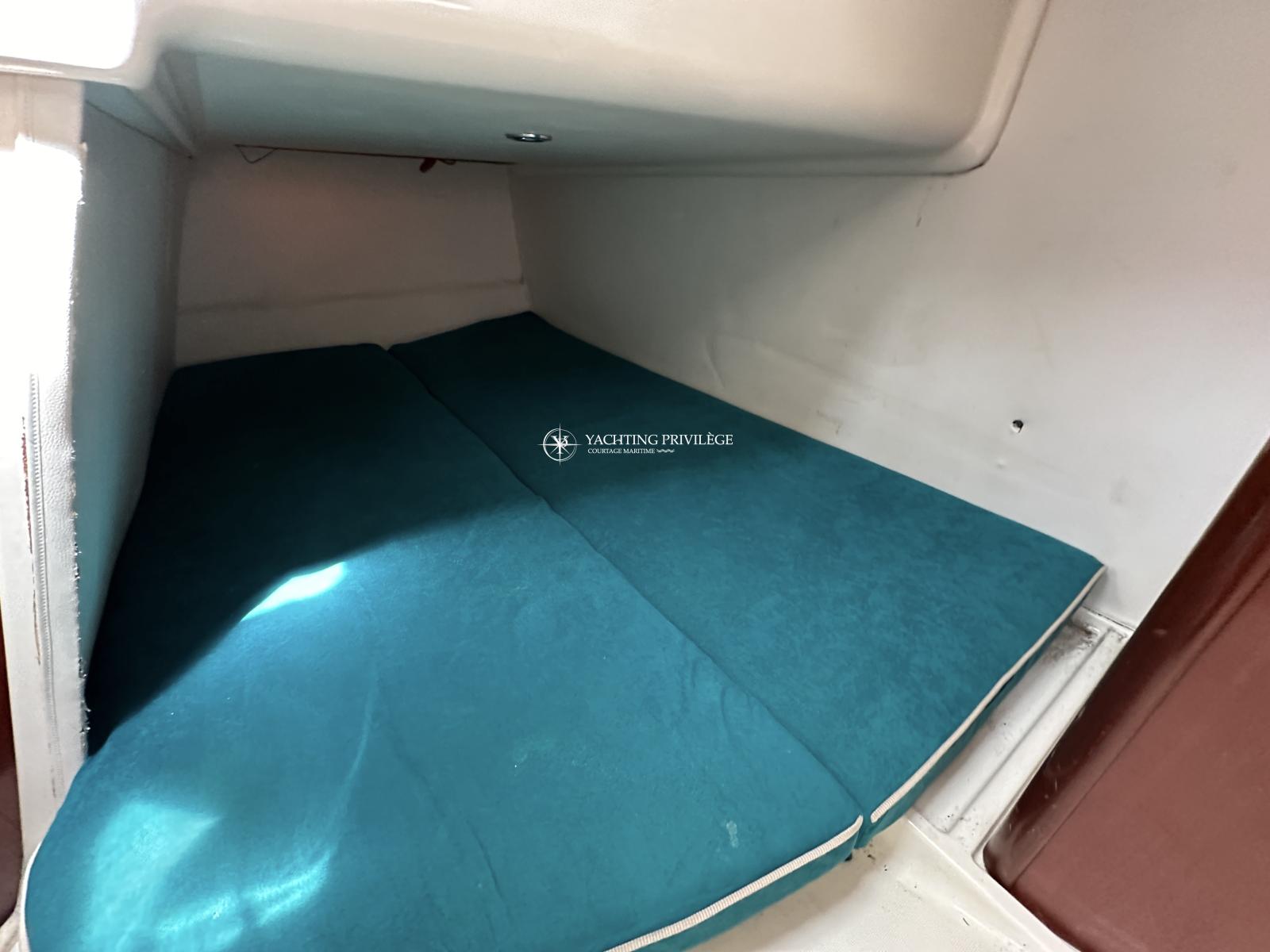 Le navire est équipé d’un carré arrière transformable, bain de soleil avant, guindeau électrique, chargeur de batterie Cristec, circuit 12V / 220V, GPS/Sondeur…