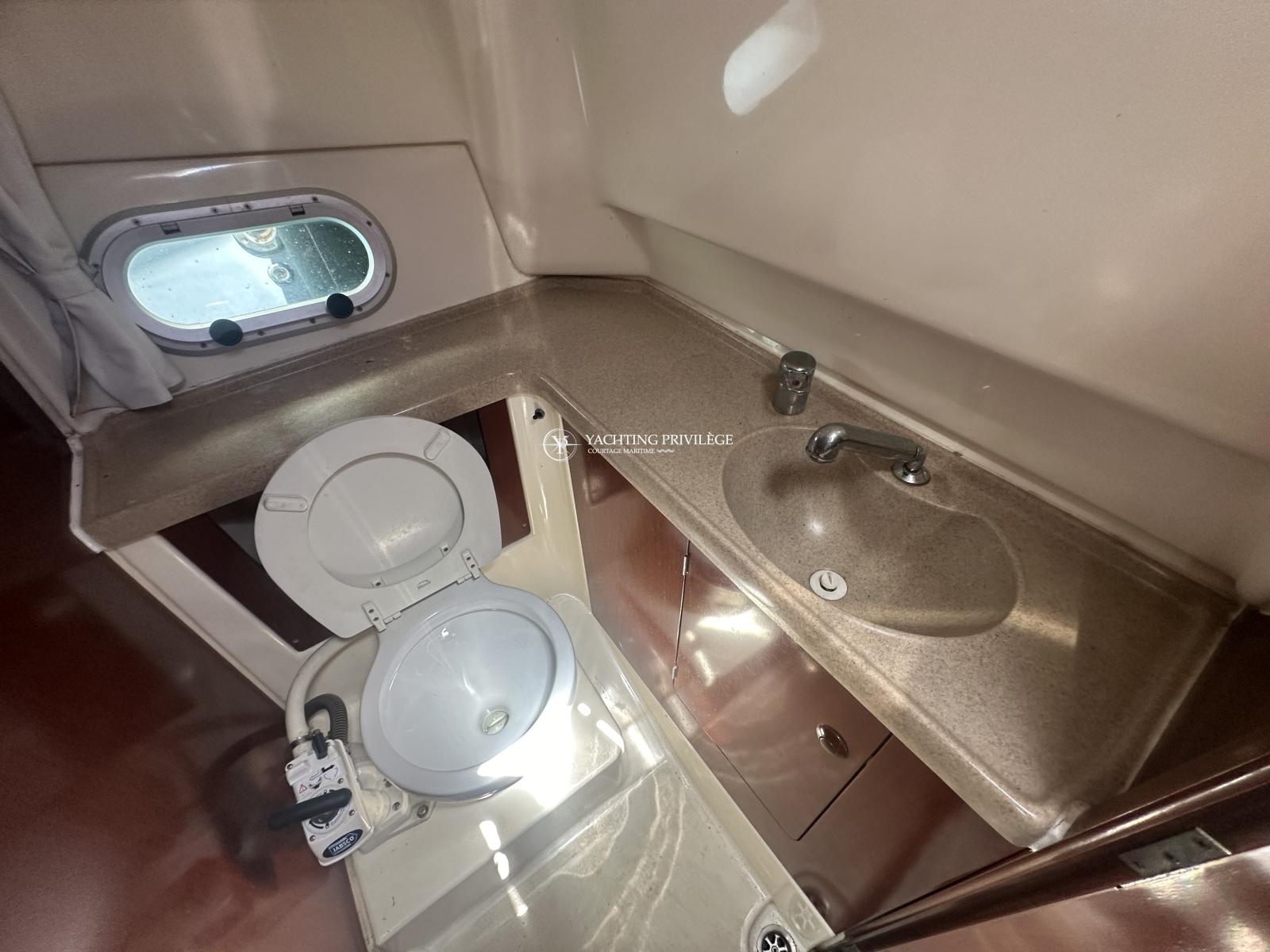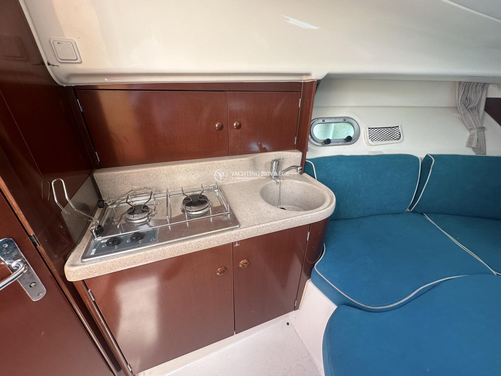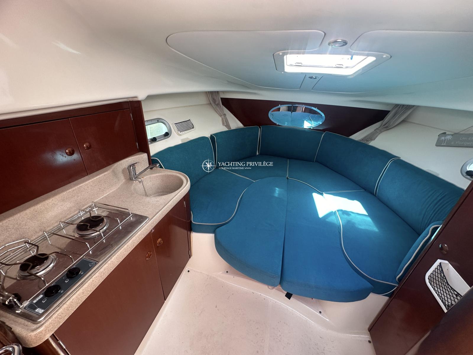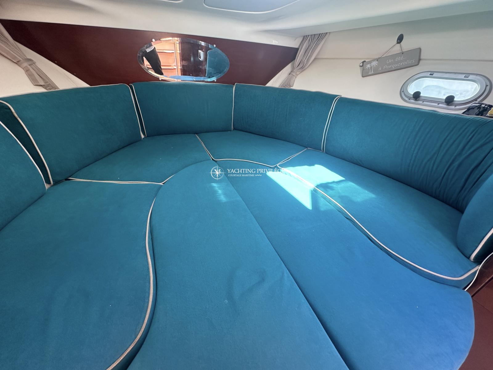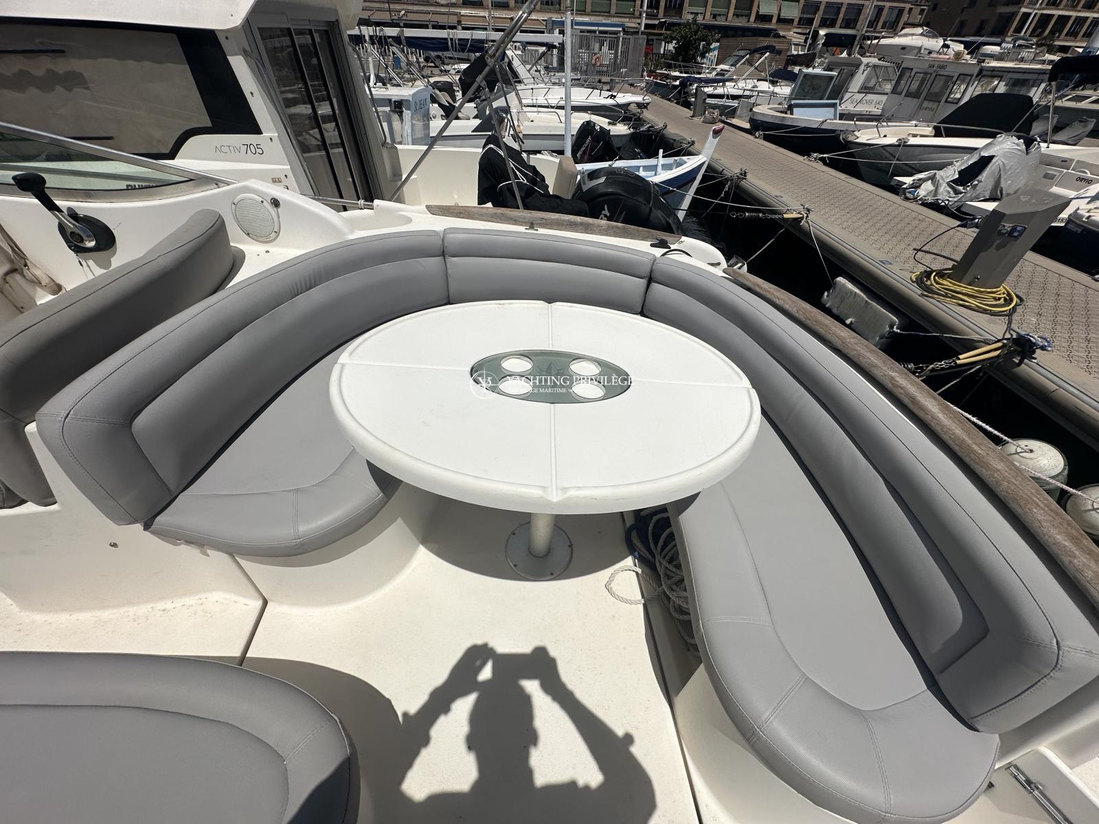 Le navire est équipé d’un carré arrière transformable, bain de soleil avant, guindeau électrique, chargeur de batterie Cristec, circuit 12V / 220V, GPS/Sondeur…