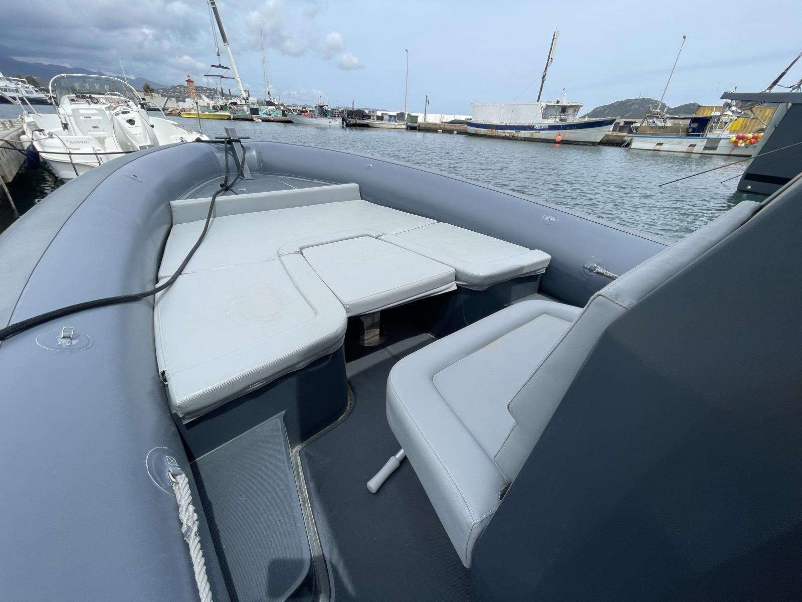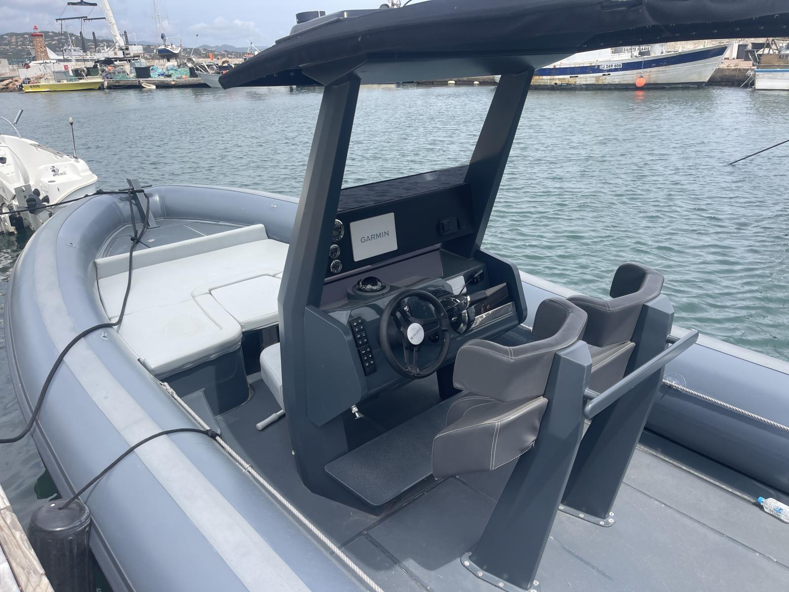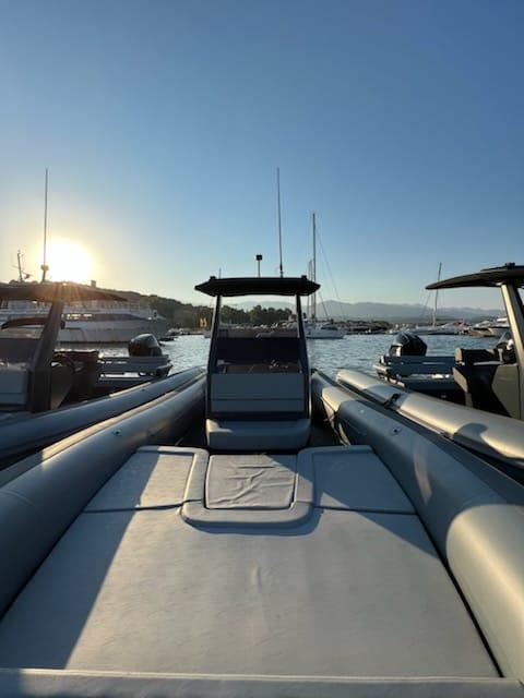 Ce semi-rigide haut de gamme est le compromis idéal entre puissance et facilité de pilotage, offrant une excellente tenue en mer et une navigation sécurisée. Son espace de pont optimisé permet une circulation fluide et un confort maximal, avec des équipements premium garantissant une expérience nautique exclusive.