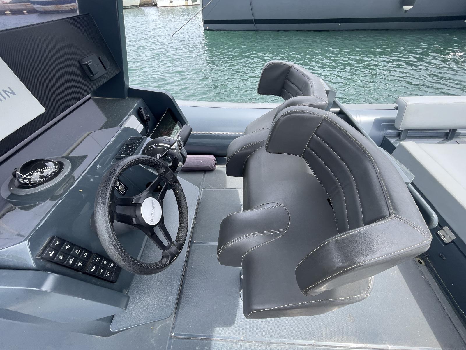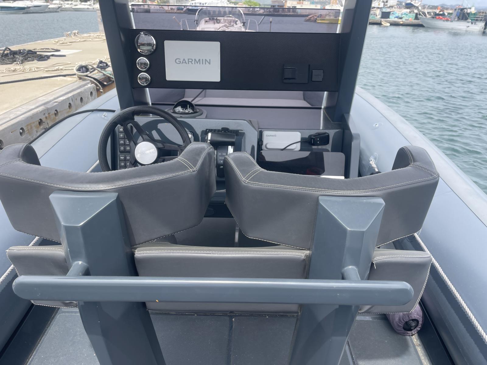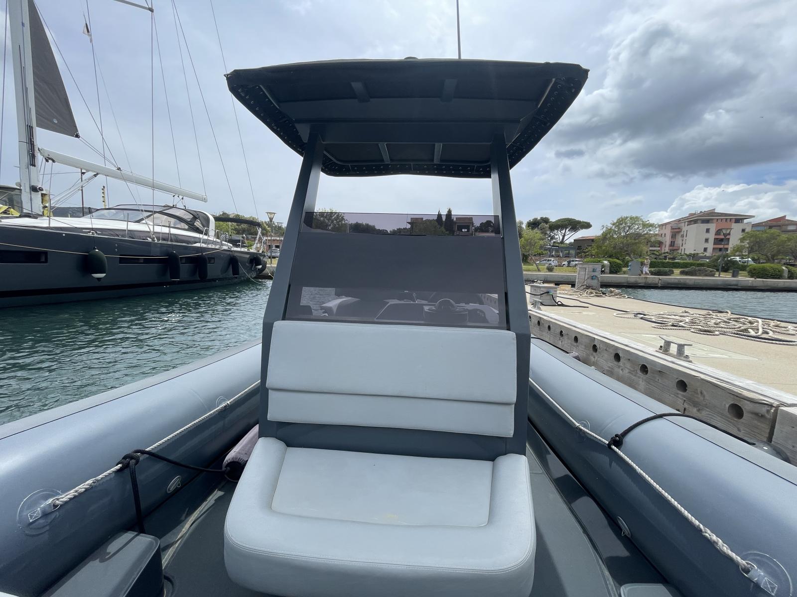 Ce semi-rigide haut de gamme est le compromis idéal entre puissance et facilité de pilotage, offrant une excellente tenue en mer et une navigation sécurisée. Son espace de pont optimisé permet une circulation fluide et un confort maximal, avec des équipements premium garantissant une expérience nautique exclusive.