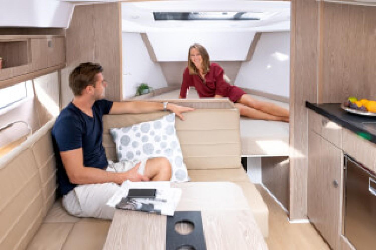 Le Sealine S335v, aux multiples récompenses, réunit le design estival de la gamme sport et les hublots de coque caractéristiques de Sealine, avec la maniabilité d'un moteur hors-bord puissant allant jusqu'à 2 x 350 PS. L'enfoncement est donc réduit, ce qui permet la navigation sur des eaux à proximité des côtes et des mouillages. Célébrez la vie en plein air à bord du S335v : le cockpit et la proue, lounges élégants au soleil, vous attendent. Même le conducteur profite de cette ambiance lorsque le toit coulissant est ouvert. Deux cabines lumineuses avec double couchette se trouvent au milieu du bateau et au niveau de la proue, reliées par le salon au design élégant.