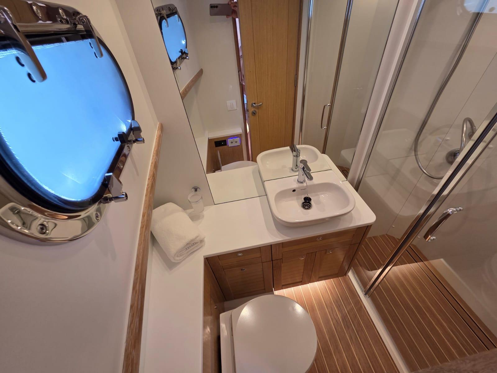 À l’intérieur, l’ambiance reflète le savoir-faire et l’esprit méditerranéen du chantier Sasga Yachts. Les finitions raffinées, les boiseries claires et la luminosité naturelle créent une atmosphère chaleureuse.