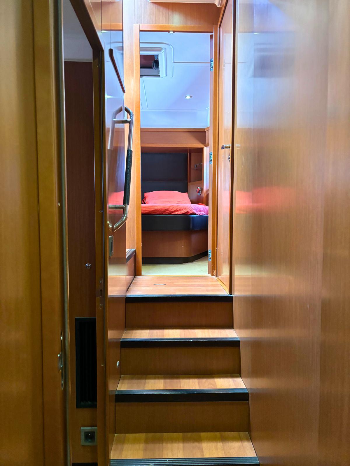 3 cabines, 2 salles d'eau, cabine arrière de marin
