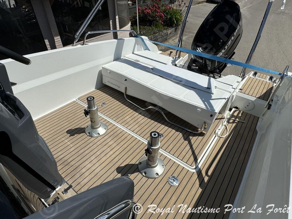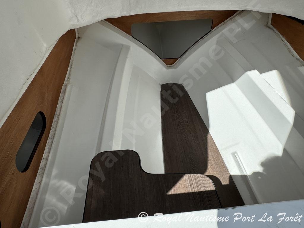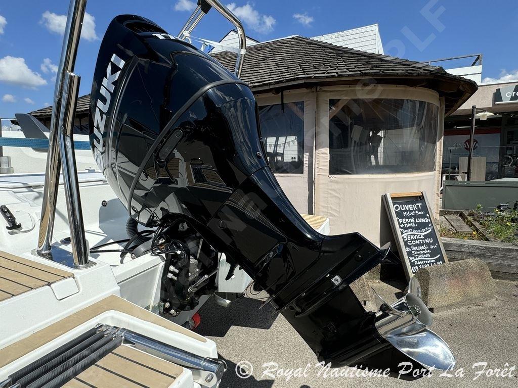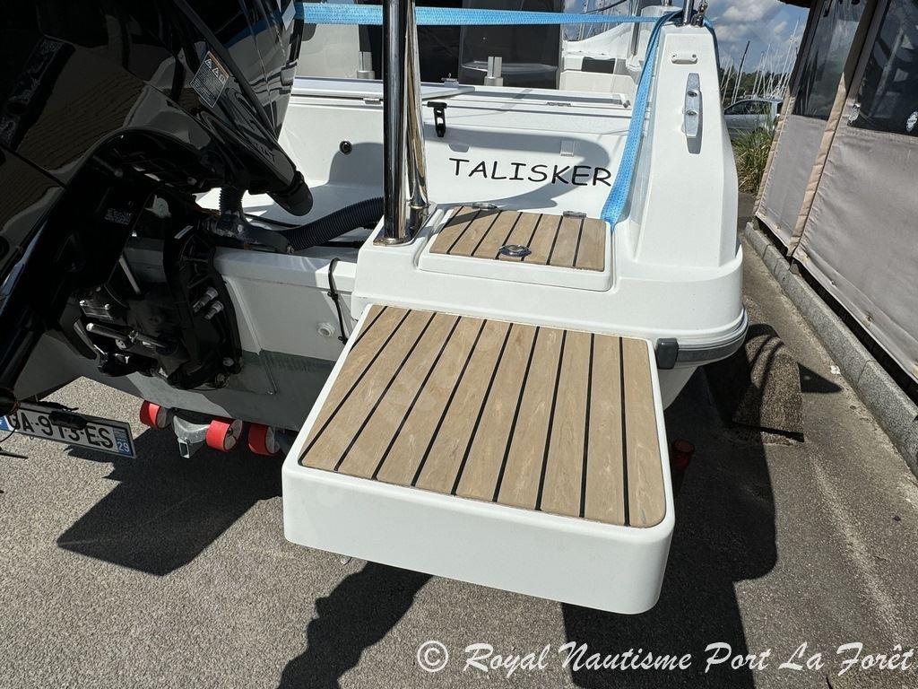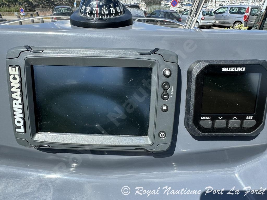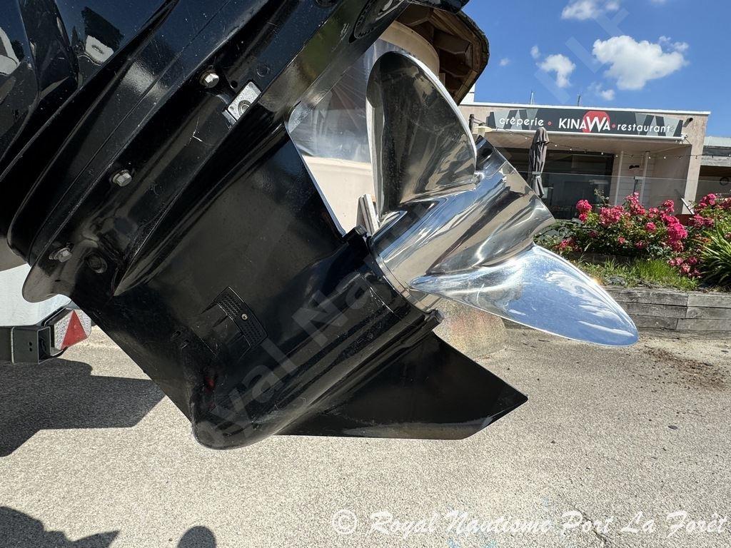 Parfaitement équipé, il dispose d’un GPS/Sondeur Garmin, d’une douchette de pont, d’un bain de soleil avant, d’une sellerie en excellent état, ainsi que d’une housse de console et d’un bimini. Les plateformes de bain allongées facilitent l’accès à la mer.