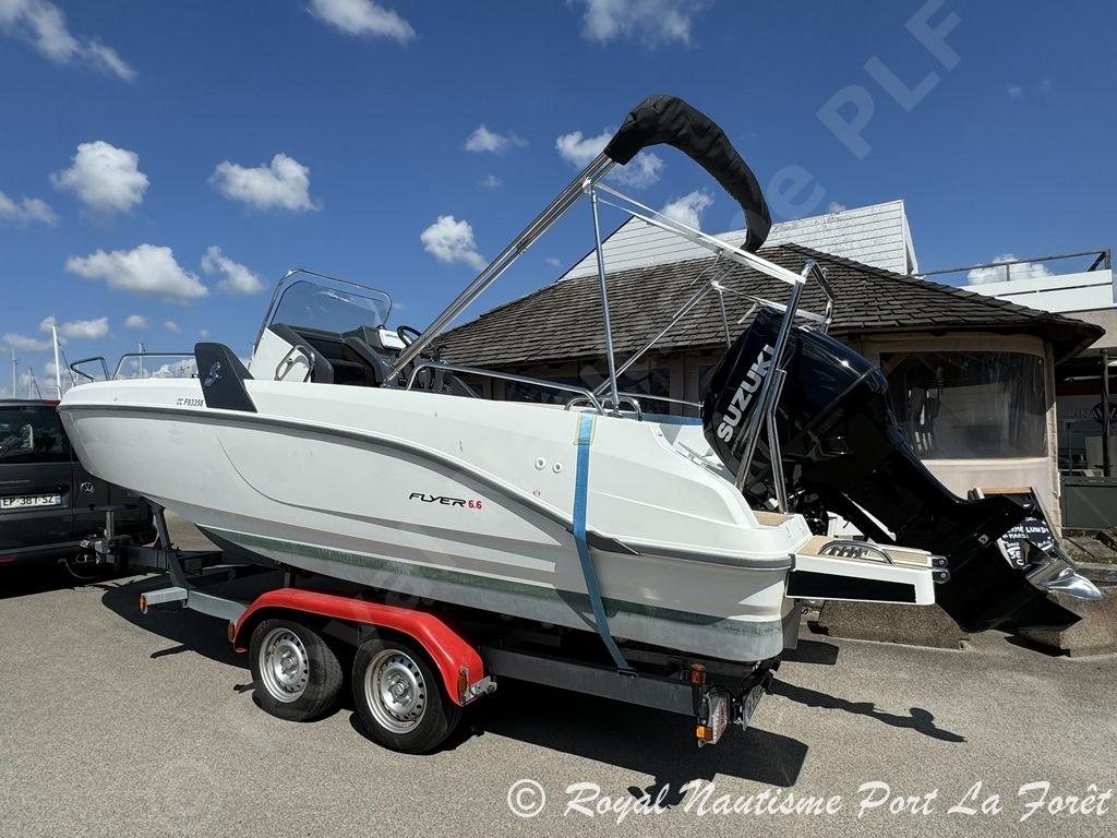 BENETEAU FLYER 6.6 SPACEDECK from 2019, owner's boat never rented, condition close to new. A day boat with an innovative design and a completely open deck, the Flyer 6.6 SPACEdeck is the ultimate “Open” boat. Its spacious interior can accommodate up to ten people.