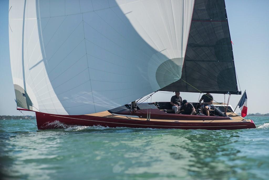 Le Tofinou 9.7 est le fruit du travail de l'architecte Michele Molino et du bureau d'étude du chantier Latitude 46. Le plan de pont dont le style est inspiré par Peugeot Design est adaptable en fonction d'un programme de navigation solitaire ou en équipage.