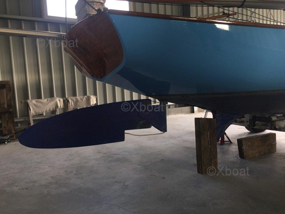 Ce day-boat est doté d'un safran suspendu qui se relève à l'horizontale et d'une quille en plomb pivotante (220 Kg) qui lui permettent d'échouer ou d'être transporté sur remorque.