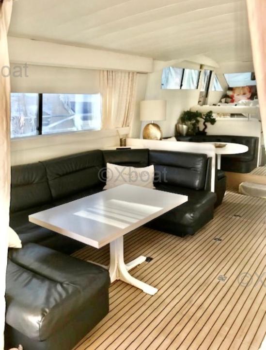Le design de la coque est élégant et moderne, typique des yachts de cette époque. La coque est généralement en fibre de verre renforcée, ce qui la rend légère et résistante.