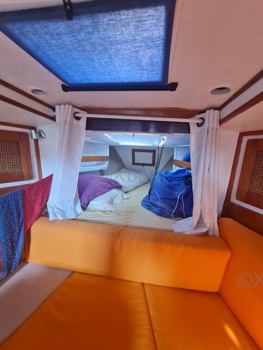 XBOAT ref :5341.voilier acier SCORPION 9 (10.80m X 3.45m) de 1990 à vendre, chantier Plataret, architecte Stabili. Génois, trinquette, tourmentin, spinaker, GV 2017 , moteur Nanni 4 cyl. 43CV (1329 heures), régulateur ATOMS, pilote Simrad, traceur/radar Lowrance, 250 litres de carburant, 340 litre d’eau, guindeau Lofran, 80m de chaîne, 2 ancres, moteur 2 temps Mercury 2.5CV pour annexe, passerelle d’accès à bord, douchette de pont, chauffe-eau quai, chargeur Blue Smart 12V 30amp, poêle REFLEKS, tau d’hiver, bimini, gaz 2 feux, four ENO, tableau électrique neuf (2020), WC Jabsco, anémomètre, girouette, sondeur, compas GPS Autohelm, compas Danforth hi speed constellation, VHF ASN fixe, VHF portable, éclairages led, radio BLU Sangean, radio Pioneer cd/usb/bluetooth, 2 panneaux solaires (100 et 75W), 4 batteries de service 110Ah, échelons de mât inox, étai largable, 1 tangon. Bateau de voyage - coup de cœur, idéal pour voyage en couple ou avec enfant, 2 cabines, nb de passagers maximum 8. Plus d'informations et photos sur le site xboat.fr