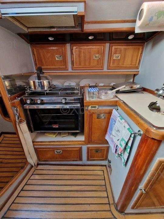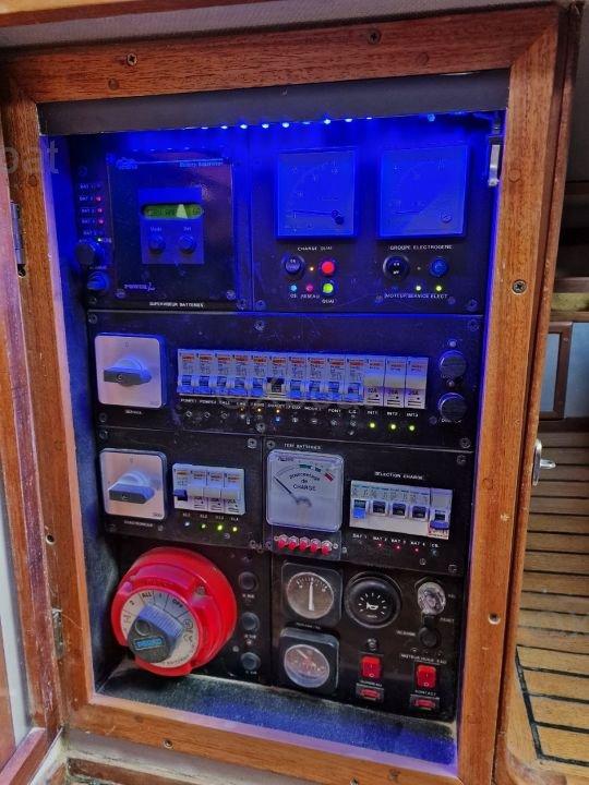 Il y a 3 cabines : une cabine avant double avec lavabo, une cabine arrière double et une cabine de navigation simple. Un cabinet de toilette avec douche et WC électrique est également présent.