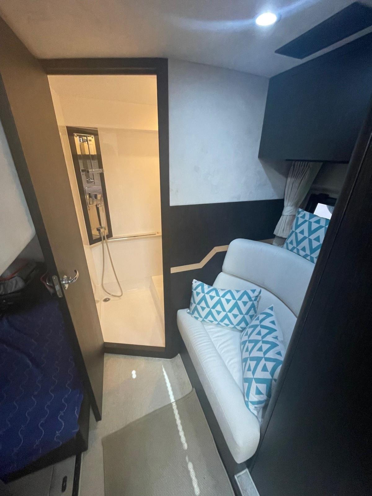 La cabine principale est un véritable sanctuaire, avec un lit confortable et un agencement bien pensé qui maximise l'espace disponible. Les cabines d'invités ne sont pas en reste, offrant tout le confort nécessaire pour des séjours prolongés à bord. La cuisine entièrement équipée permet de préparer des repas gourmands, que vous pourrez savourer à l'intérieur ou sur le pont arrière.