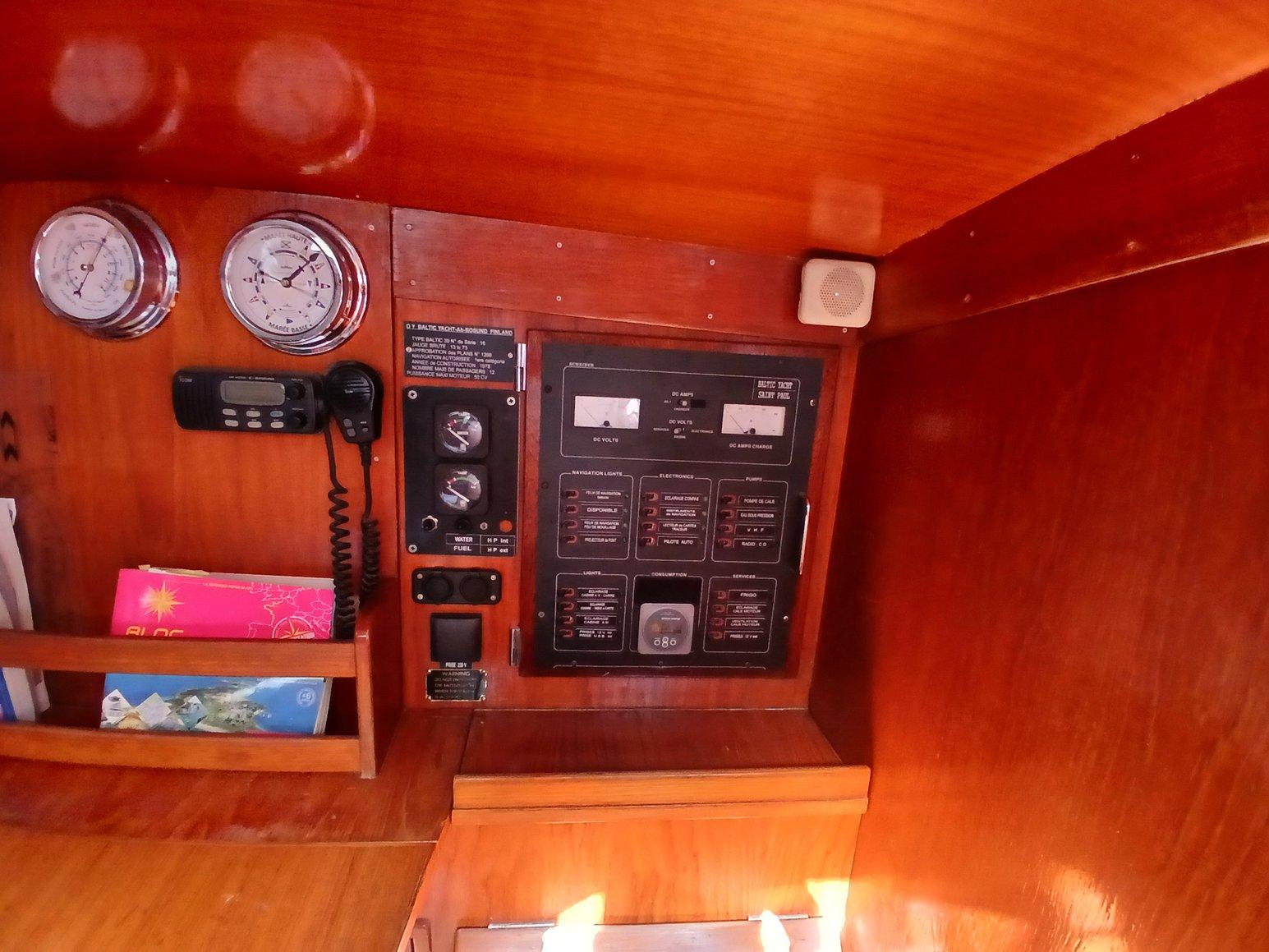 ÉLECTRONIQUE : GPS GP32, Traceur Garmin ECHO map DV, VHF ICOM IC-M45 EURO, pilote auto AUTOHELM 7000 avec vérin électrique, ADVANSEA : loch/sondeur/vent.