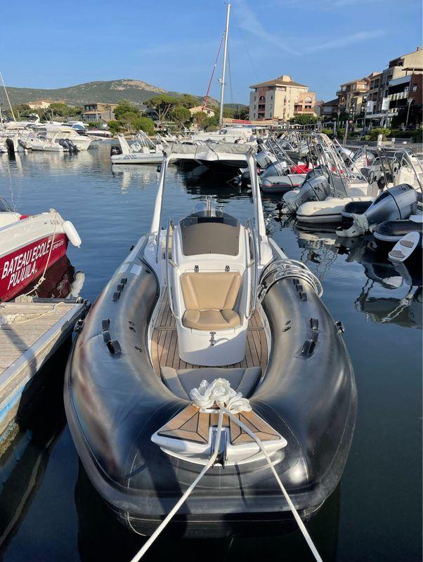 Découvrez ce superbe semi-rigide de 5.80m, actuellement disponible dans l'extrême sud de la Corse. Avec son design raffiné et son pont en teck, ce bateau a énormément de cachet. Il peut accueillir jusqu'à 8 personnes, idéal pour vos sorties en mer entre amis ou en famille.