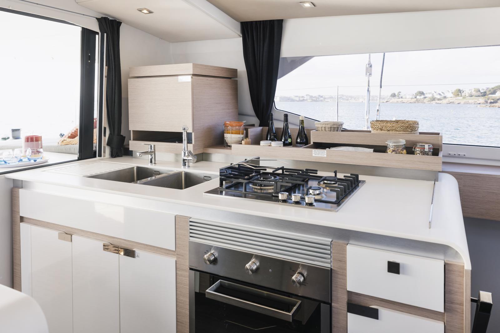 Catamaran de croisière hauturière, état neuf, prêt à naviguer, livraison en février 2025 à La Rochelle.