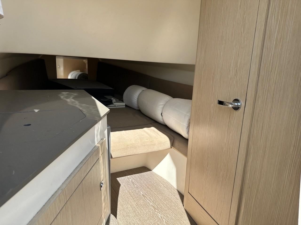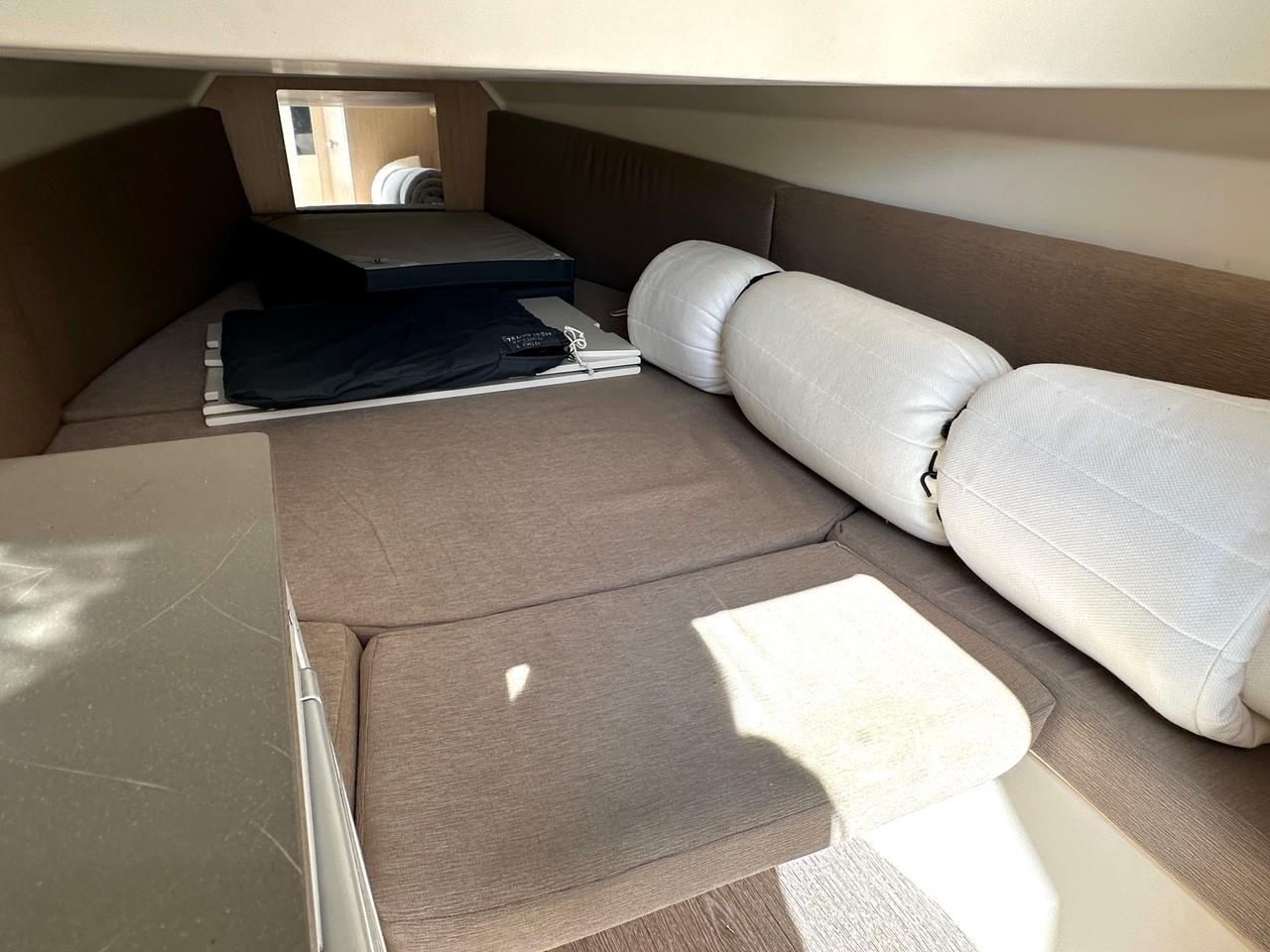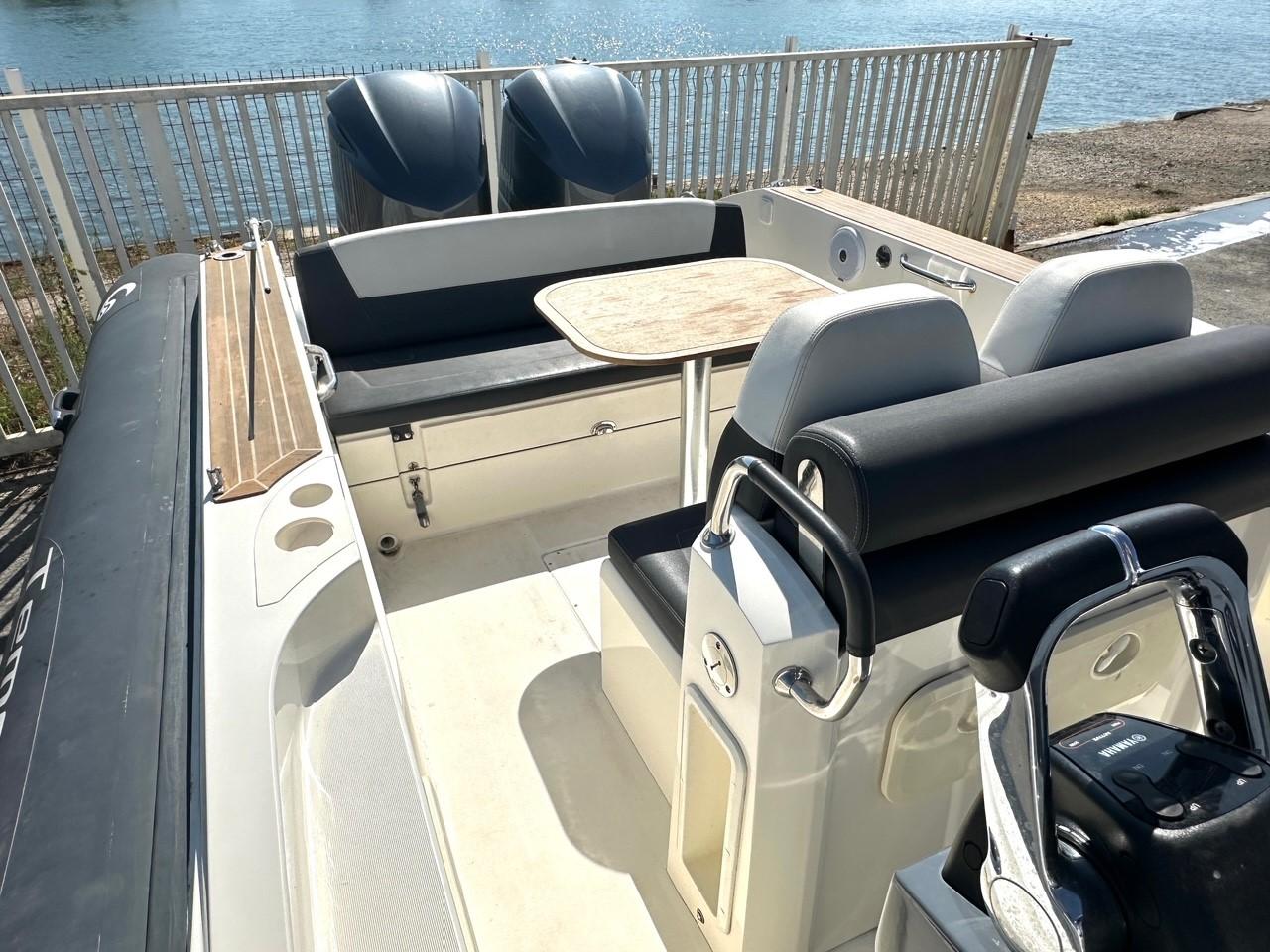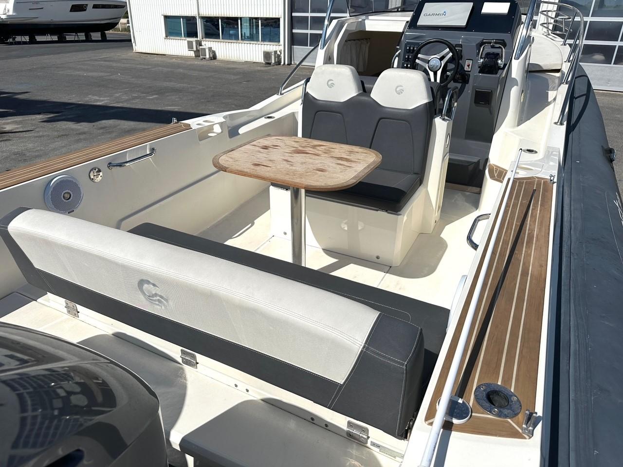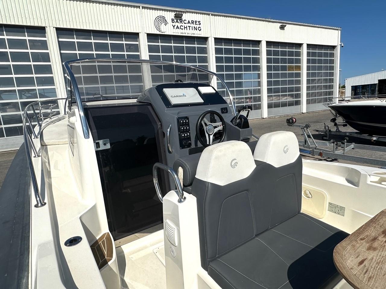 Equipé d'un taud de soleil sur 4 pilons carbone, d'une extension de bain de soleil arrière, d'un très bel écran GPS/Sondeur GARMIN 12", VHF, radio, WC électrique... etc