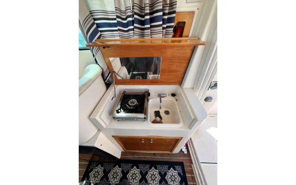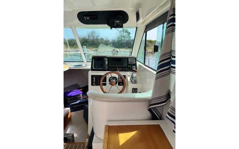 Pour vos balades comme pour vos weekends prolongés, tout y est : réfrigérateur, circuit 220V et 12V, wc marin, douchette de cockpit, guindeau électrique, propulseur d’étrave pour accoster comme un pro, bimini top ET taud de soleil pour profiter du soleil ou s’en protéger... Côté navigation : GPS, sondeur, VHF, pilote automatique, tout pour explorer ou pêcher, et même un porte-cannes pour les mordus. Passerelles, échelle de bain, musique dans le cockpit, télévision à bord, et bien plus… Il n’attend plus que vos valises !