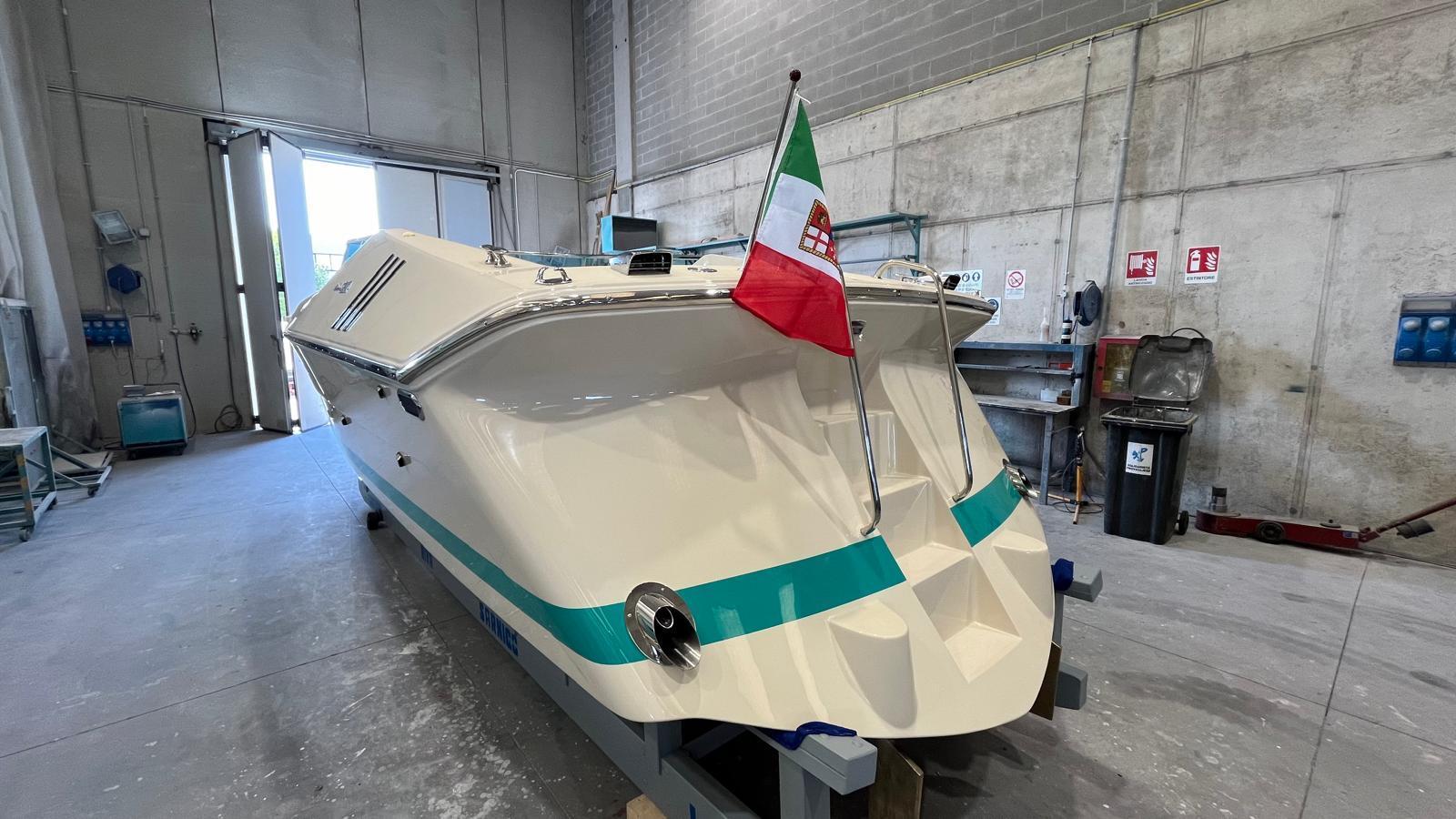 La coque du St. Tropez 211, réalisée en fibre de verre, assure légèreté et résistance, garantissant une navigation fluide et sécurisée. Les lignes de la coque sont classiques, mais avec une touche de modernité qui la distingue des autres bateaux de la même catégorie. La superstructure et le pont, également en fibre de verre, sont finis avec soin, mettant en valeur la qualité des matériaux utilisés et l'attention aux détails typique du design nautique italien.