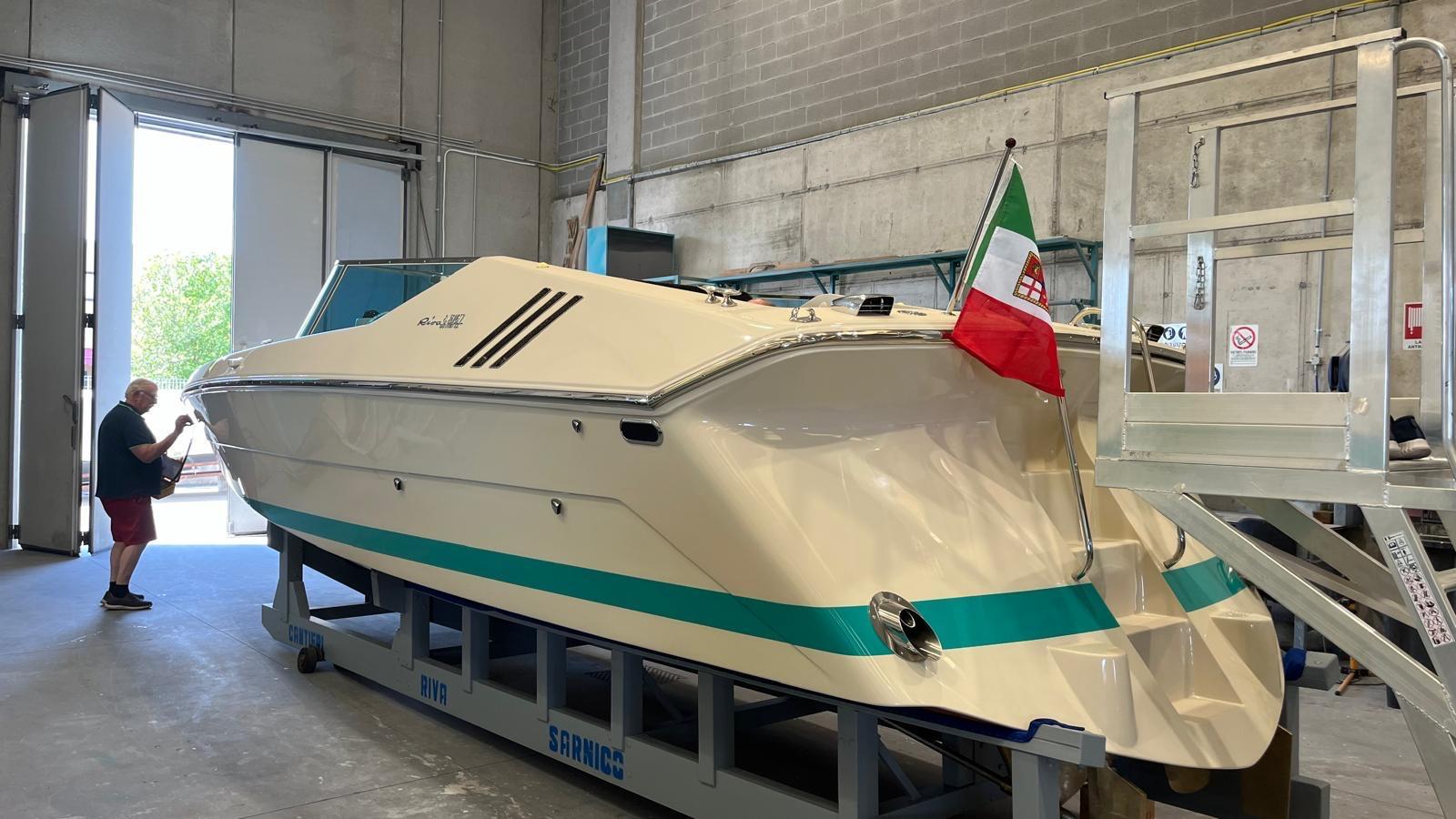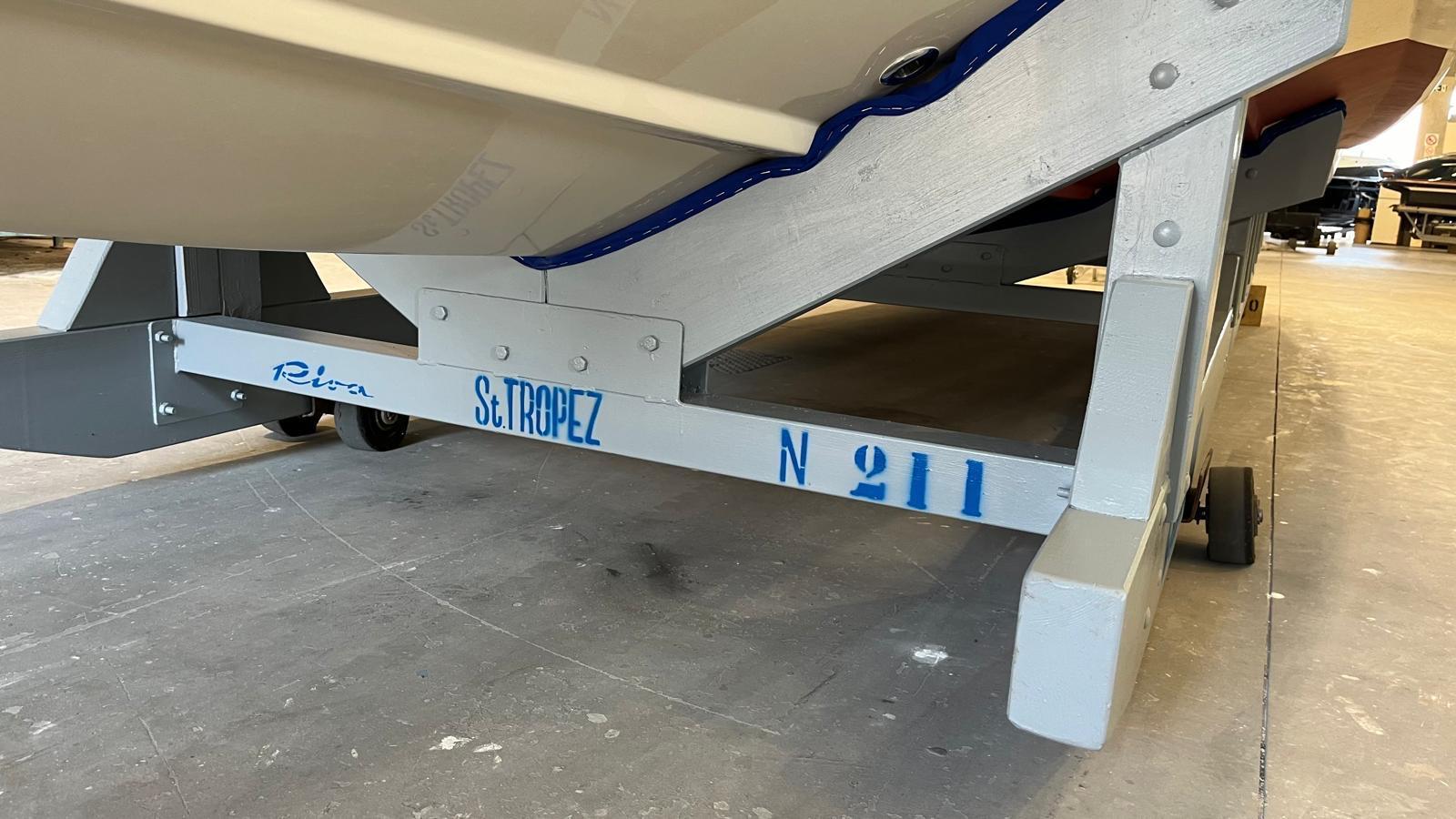 Pour parachever la restauration, le bateau est fourni avec une bâche Riva couvrante, qui protège l'ensemble de l'embarcation lorsqu'elle n'est pas utilisée. Ces interventions non seulement améliorent les performances du St. Tropez 211, mais en subliment également l'esthétique, la faisant briller comme une véritable icône du design nautique.