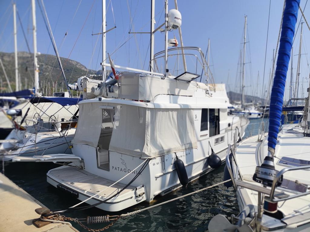Swift Trawler 44,ce bateau, exceptionnellement bien équipé (générateur, climatisation, radar, propulseurs d'étrave et de poupe, machine à laver, dessalinisateur, antenne satellite, traceur Raymarine 12", 100 m de chaîne inox avec ancre en inox, et bien plus encore), est entretenu avec le plus grand soin par un skipper professionnel. Lorsqu'il n'est pas utilisé, le bateau est systématiquement bâché pour le protéger.