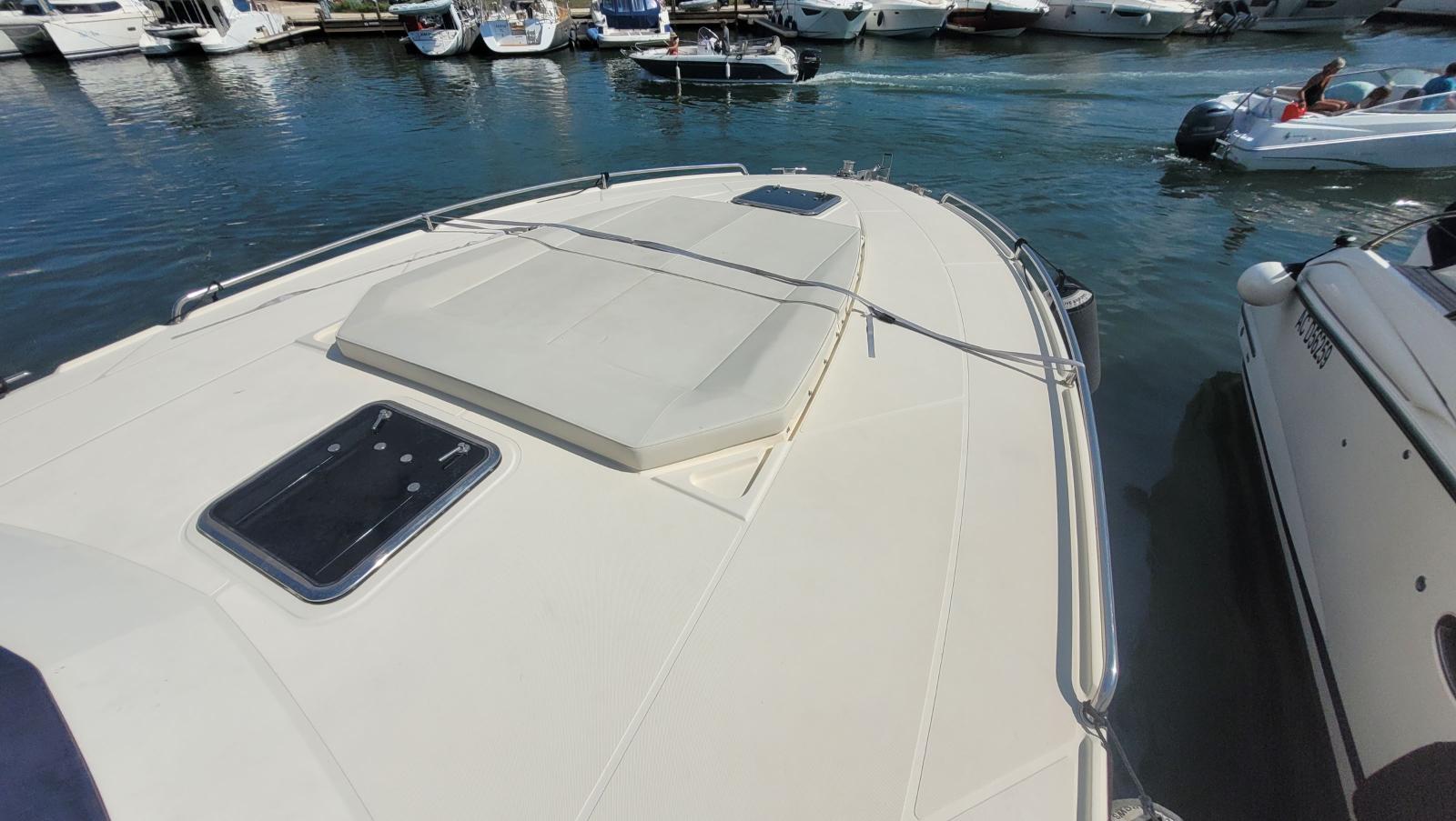 Guindeau, ancre, passerelle hydraulique, pont teck , grand bain de soleil, essuis glace, taud de soleil, table repas
